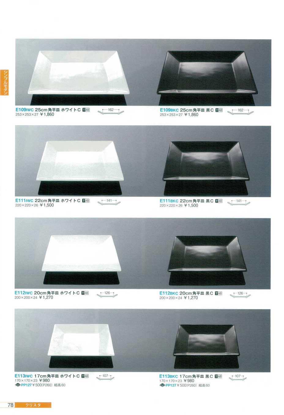 22cm角平皿黒C(商品番号E111BKC)