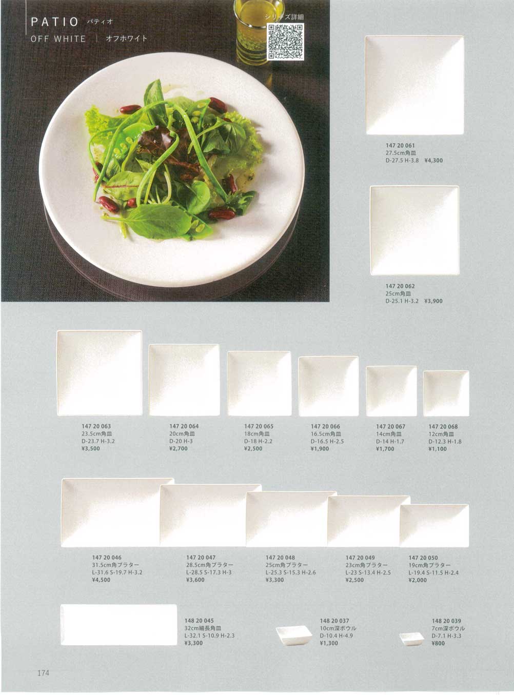 パティオオフホワイト20cm角皿