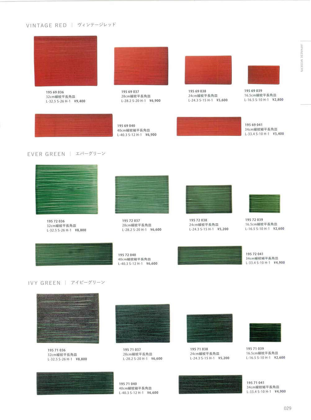 ジャパニーズモダンアイビーグリーン34cm線紋細平長角皿