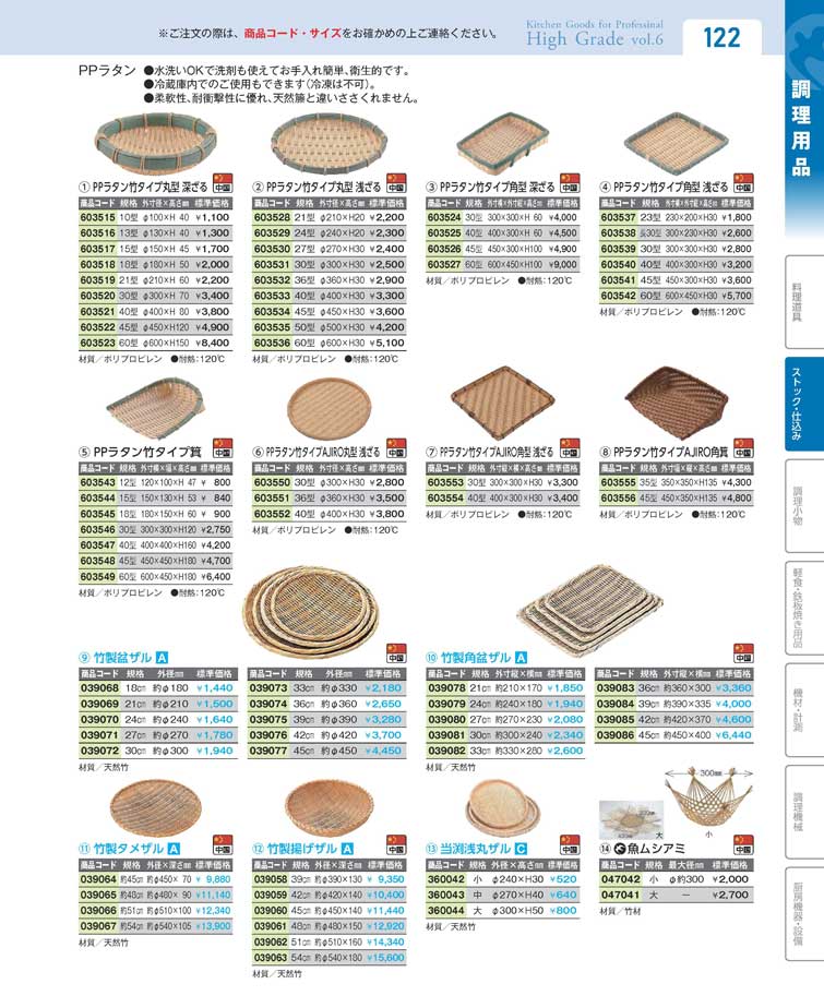 PPラタン竹タイプ丸型 深ざる60型(90)