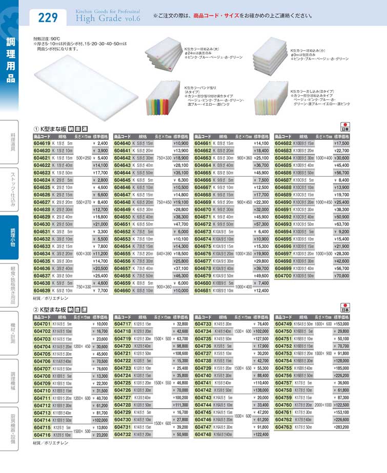 K型まな板K 6厚さ 5mm(90)