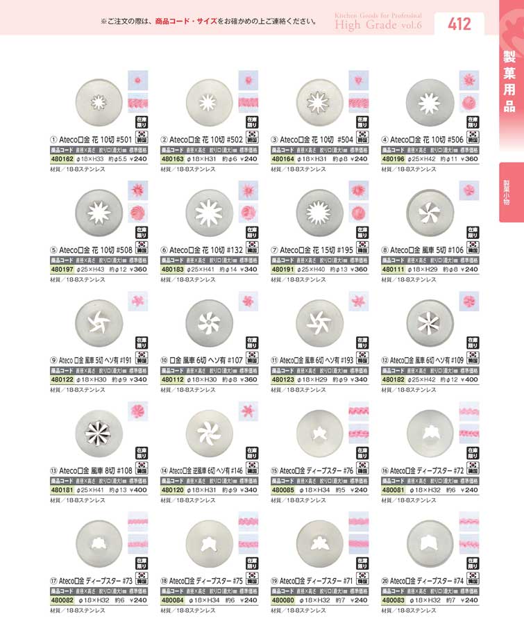 Ateco口金 風車 6切 ヘソ有 #193(90)