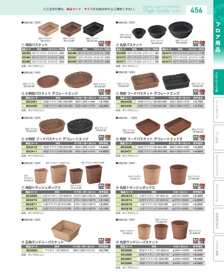 角型 フードバスケット デコレートエッジII40型ブラウンVB-965-BR(90)