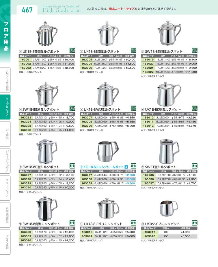 UK18-8K型ミルクポット7人用(220)(90)