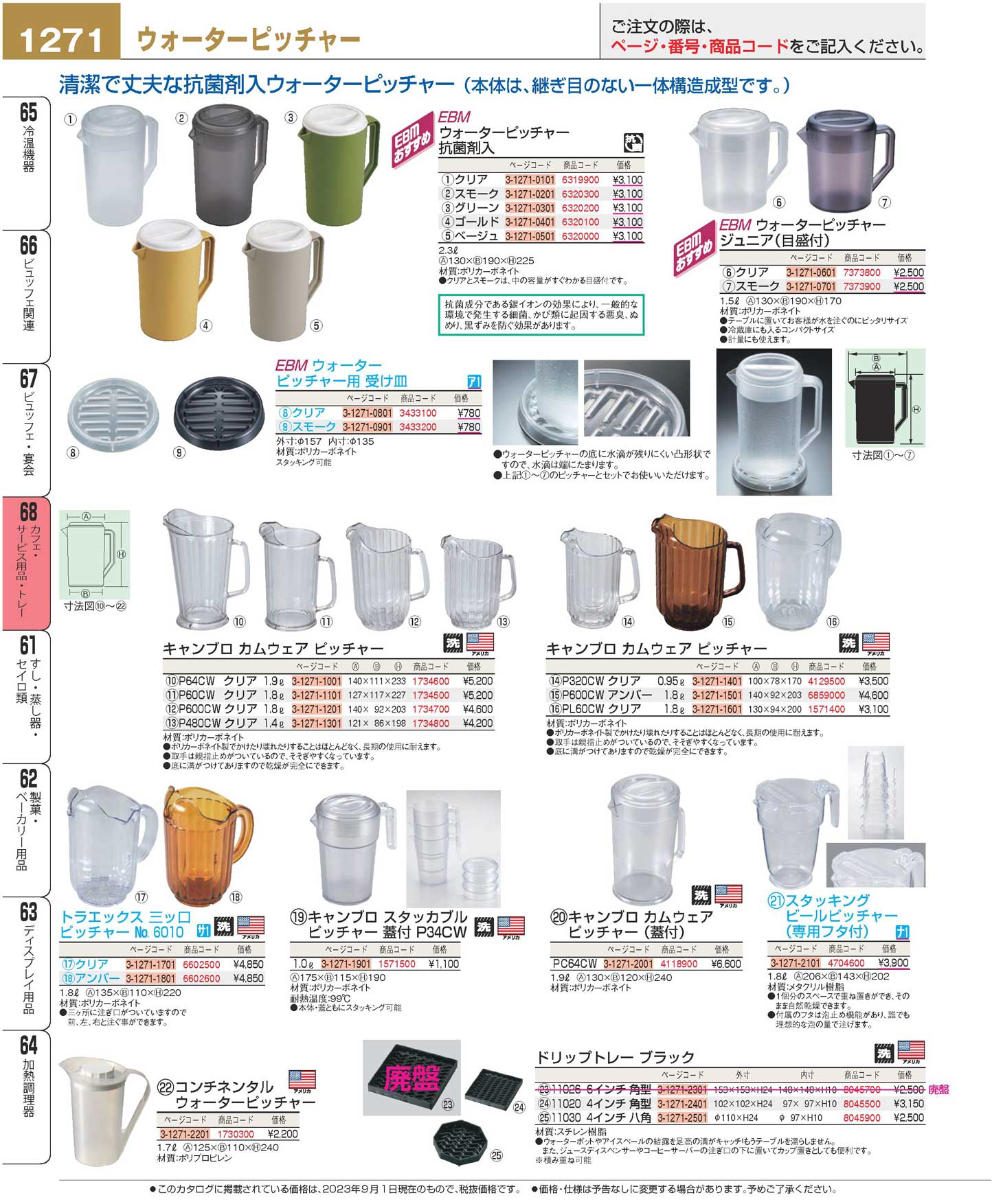EBM ウォーターピッチャー 抗菌剤入 クリア(110)
