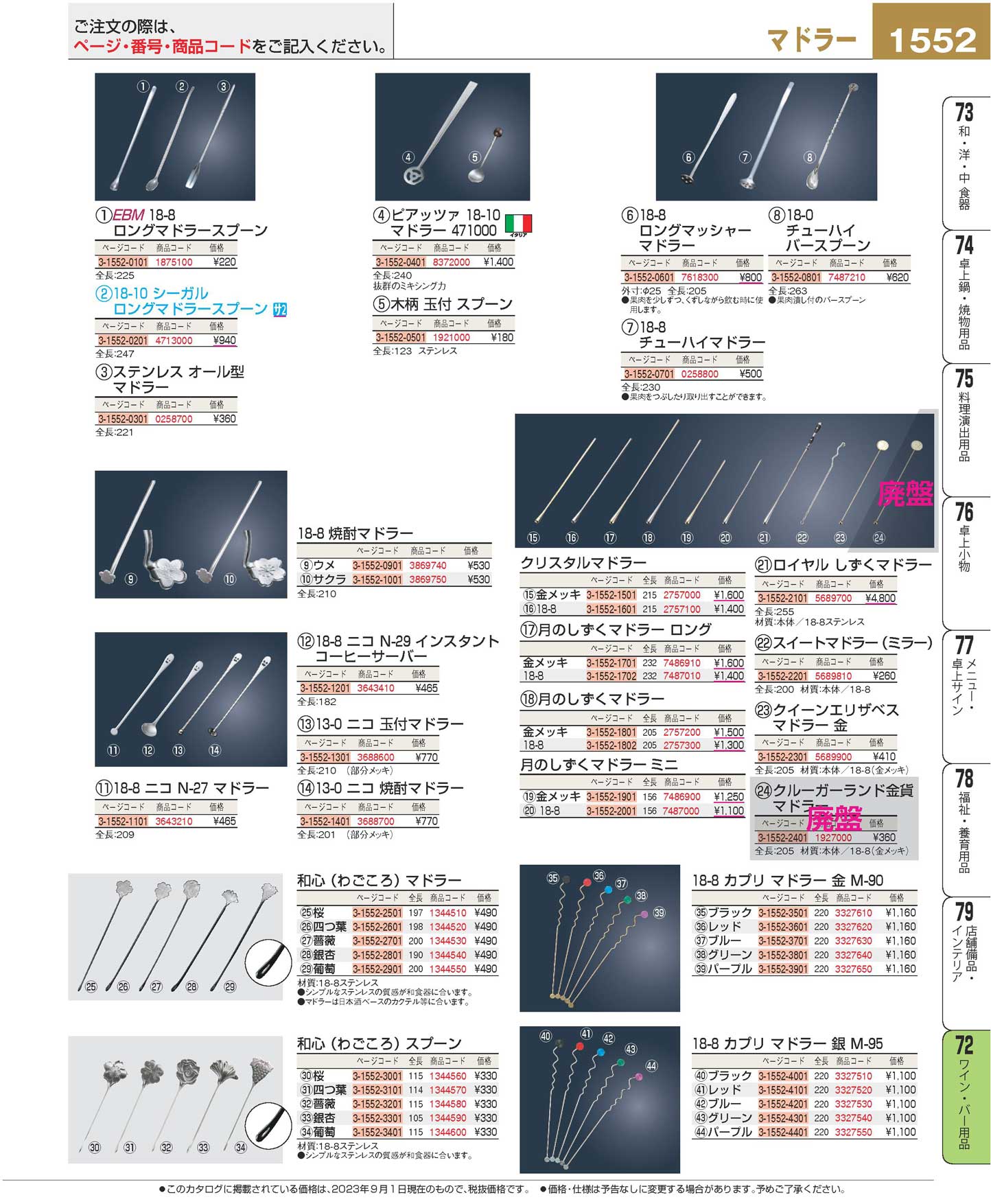 古いカタログの商品になりますので売切・廃盤などでご用意できない場合があります。