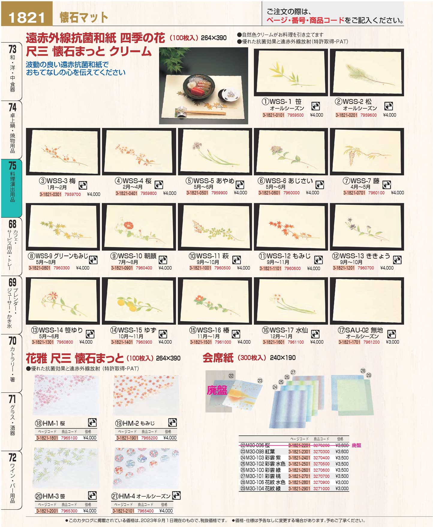 尺三 懐石まっと クリーム(100枚入)WSS-11 萩(9月から10月)(90)
