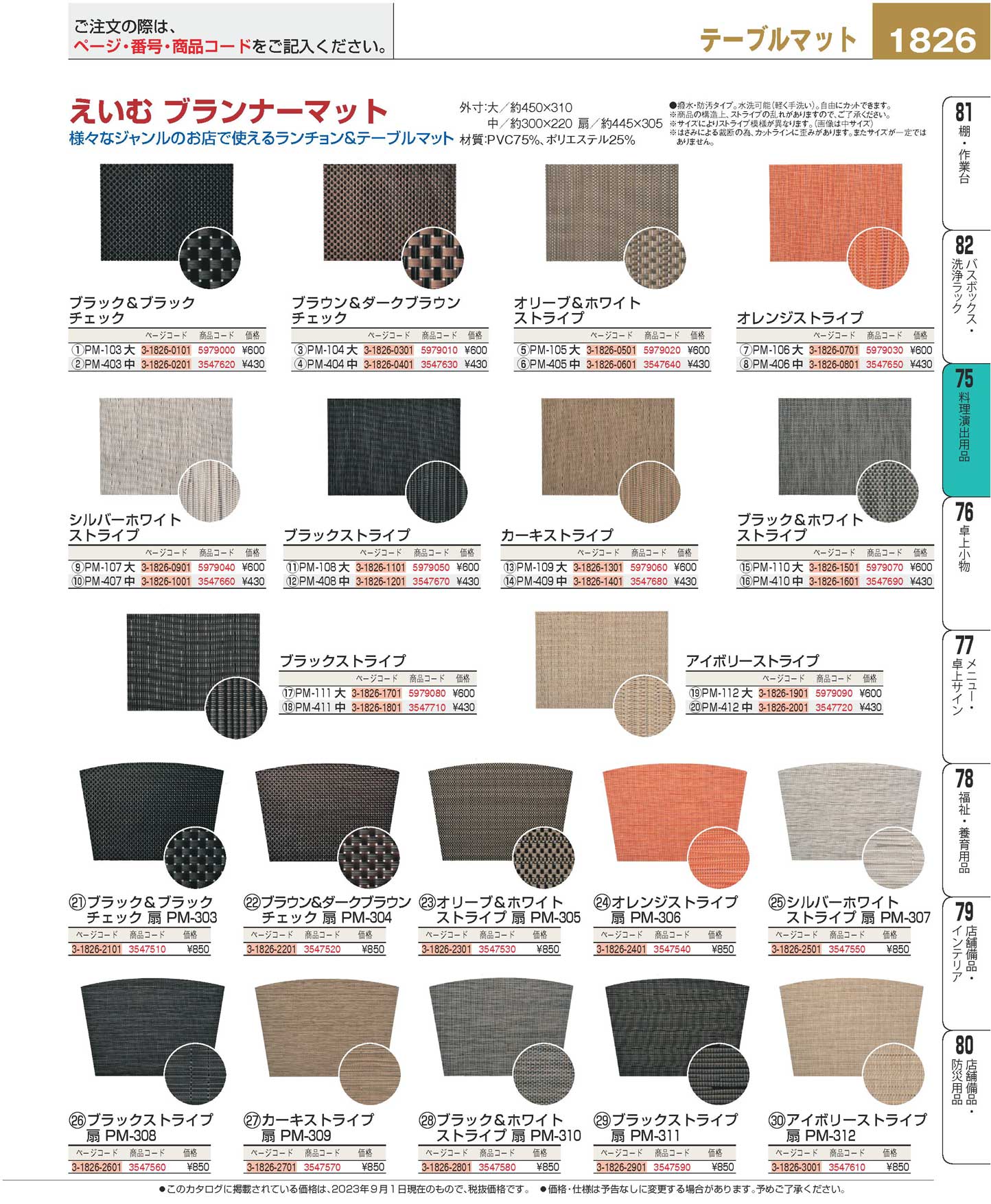 えいむ ブランナーマット ブラックストライプ 扇 PM-308(100)