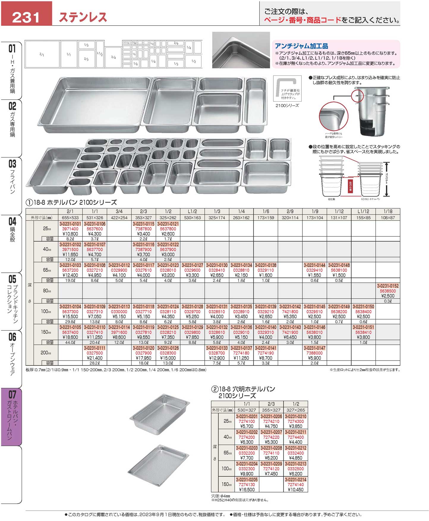 18-8 穴明ホテルパン 1/1 65mm 2112P(100)