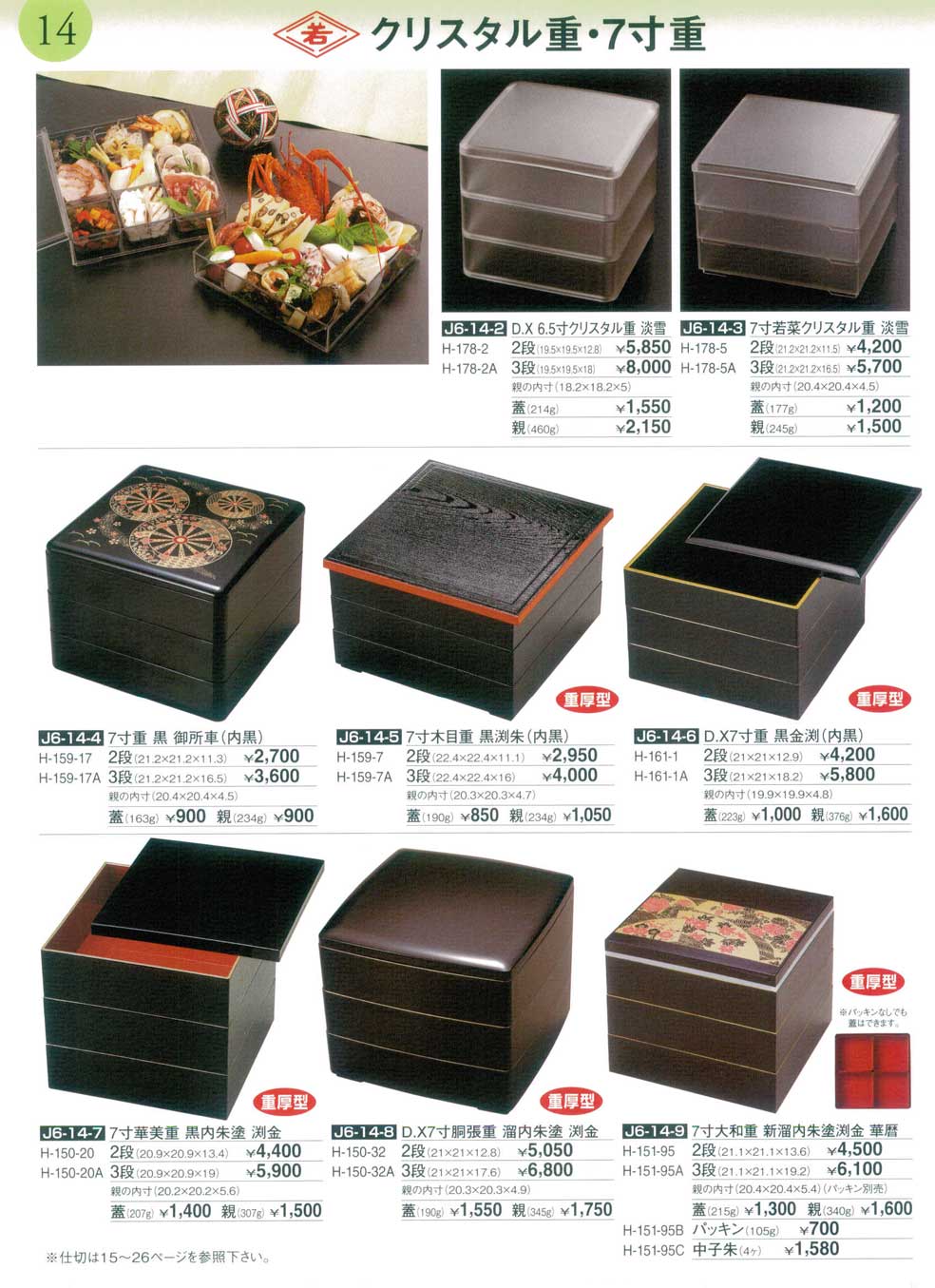 7寸華美重 黒内朱塗 渕金2段 ほか