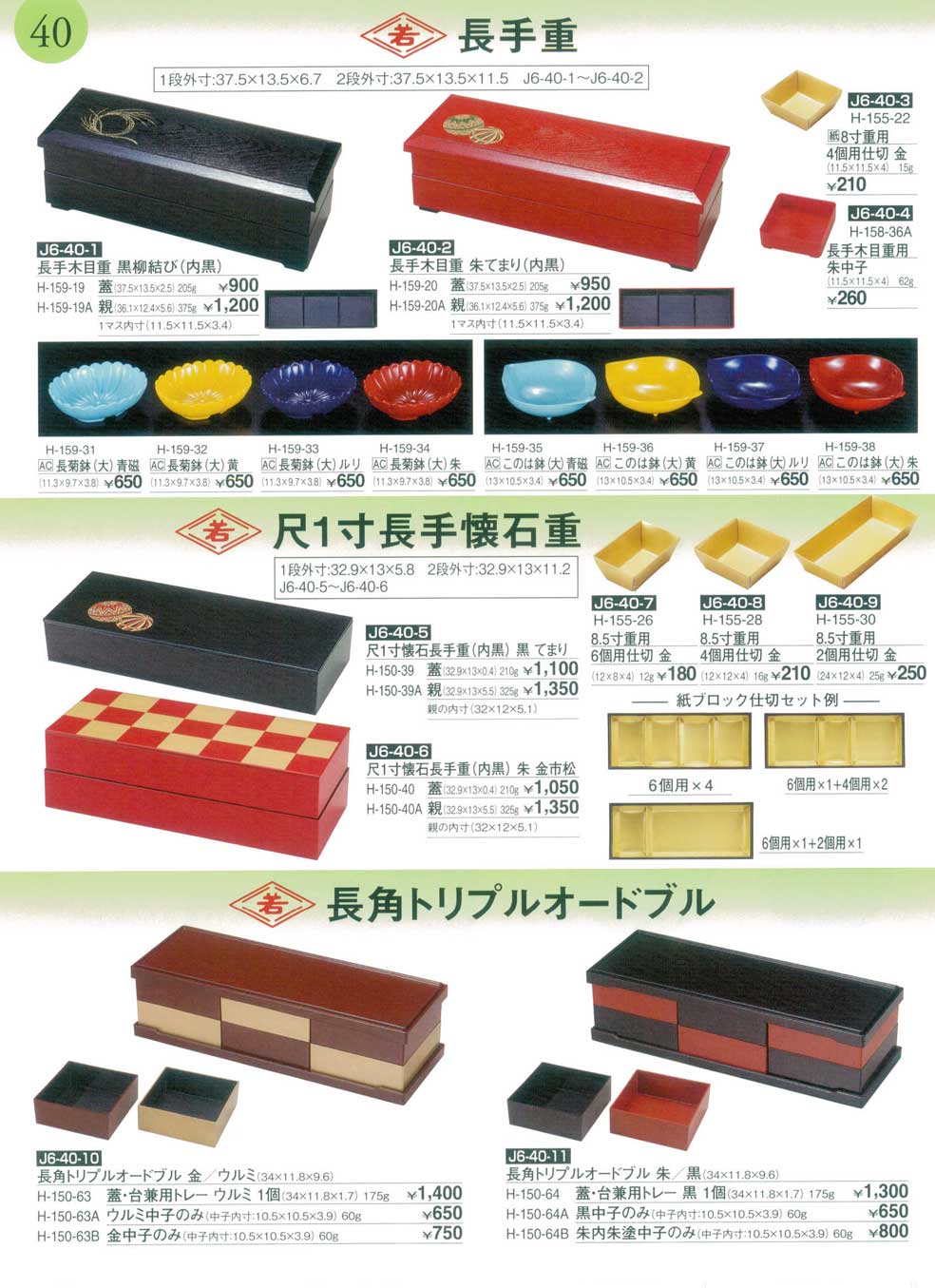 尺1寸懐石長手重(内黒) 朱 金市松蓋のみ ほか(商品番号J6-40-6)