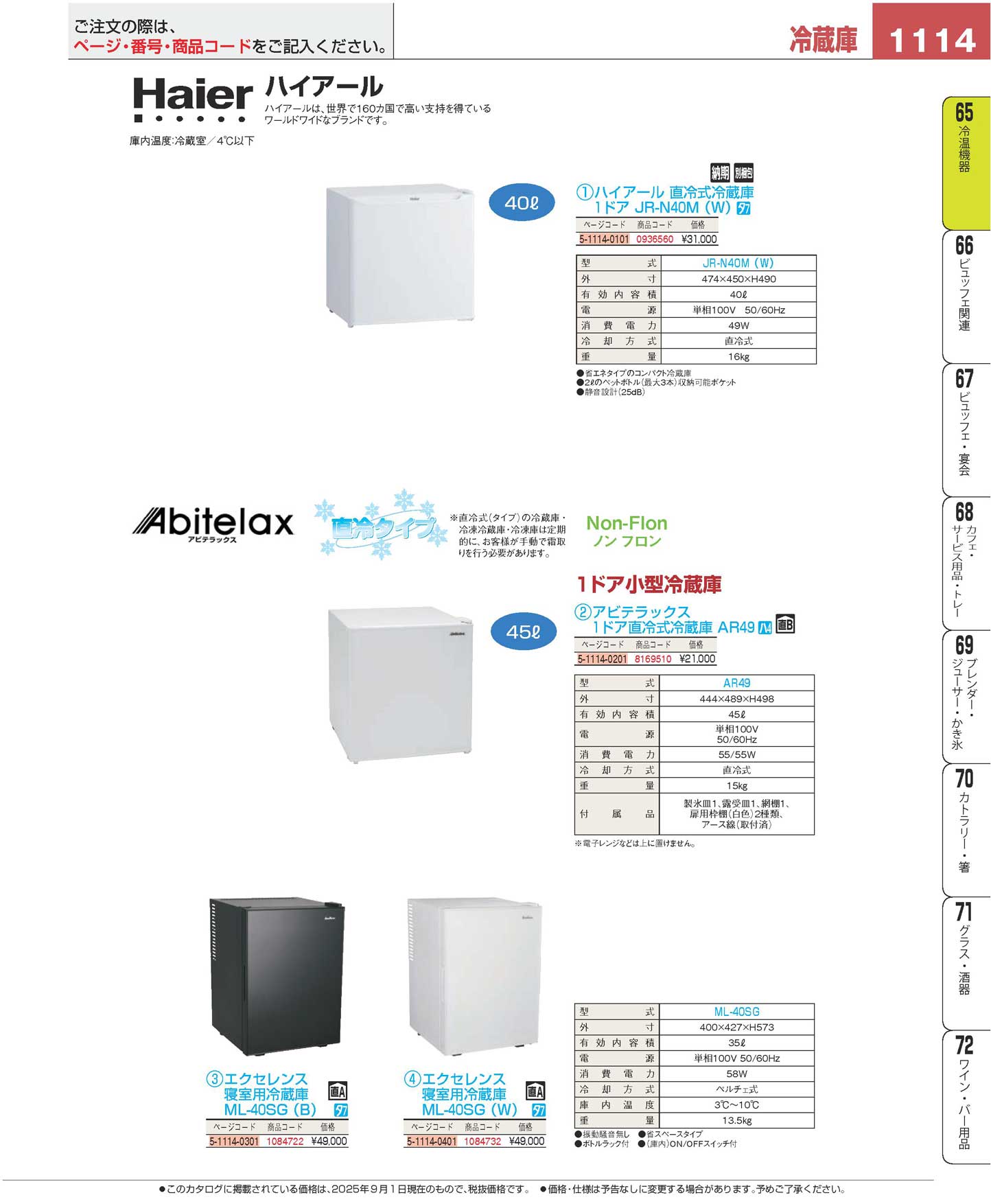 アビテラックス 1ドア直冷式冷蔵庫 AR49(150)(商品番号5-1114-0201)