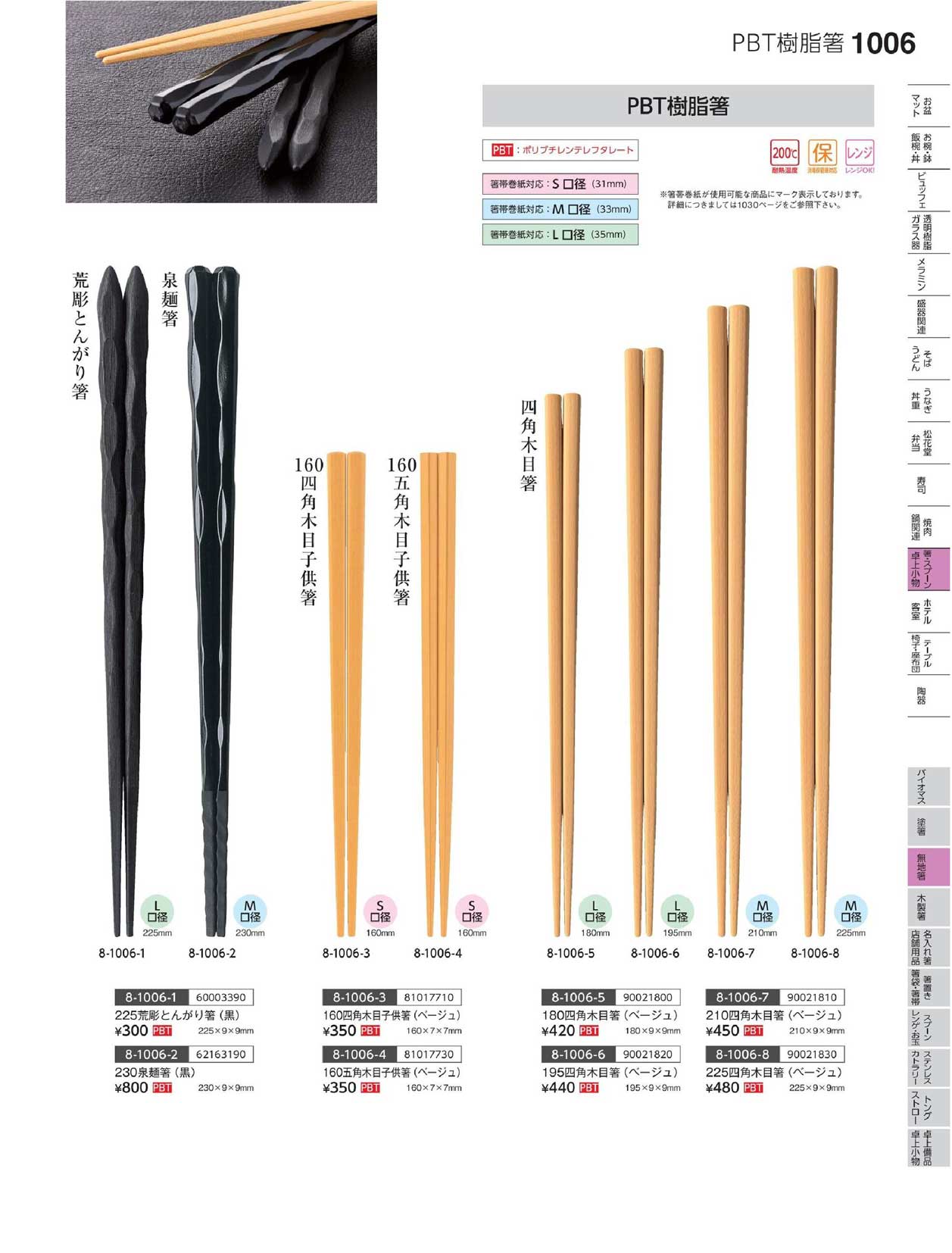 PBT)180 四角木目箸(ベージュ)
