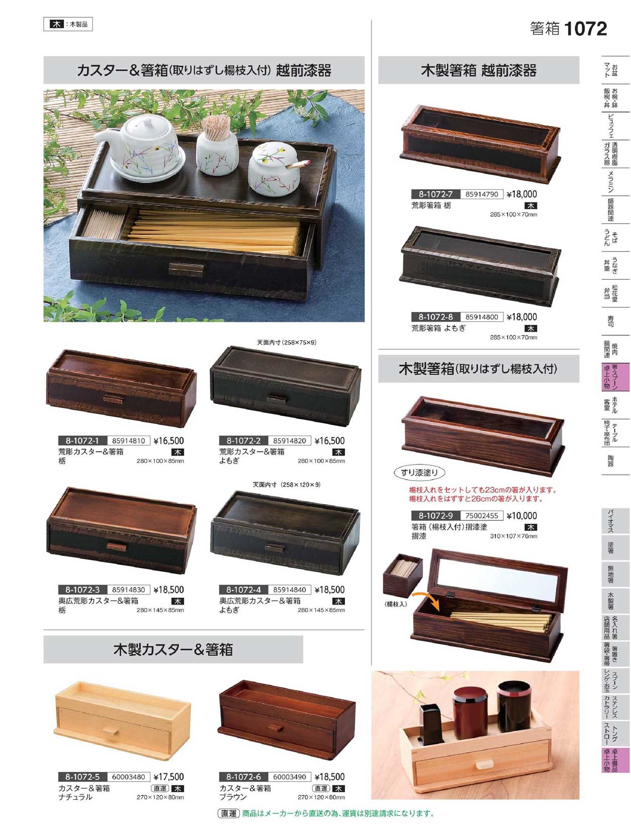 木)幅14.5奥広荒彫カスタ&箸箱 栃