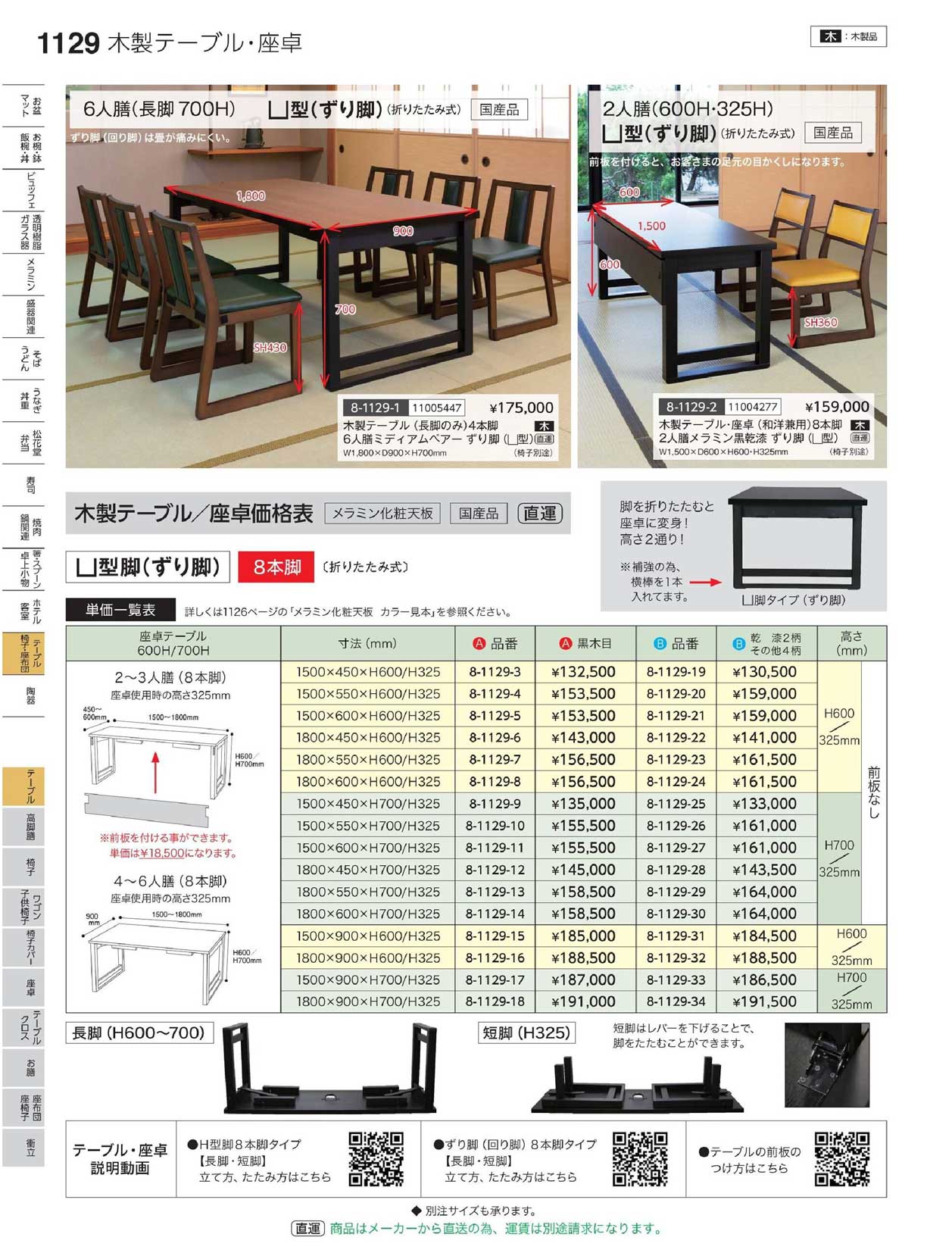 木)180×55×H60 乾漆(8本U脚) 幕板無