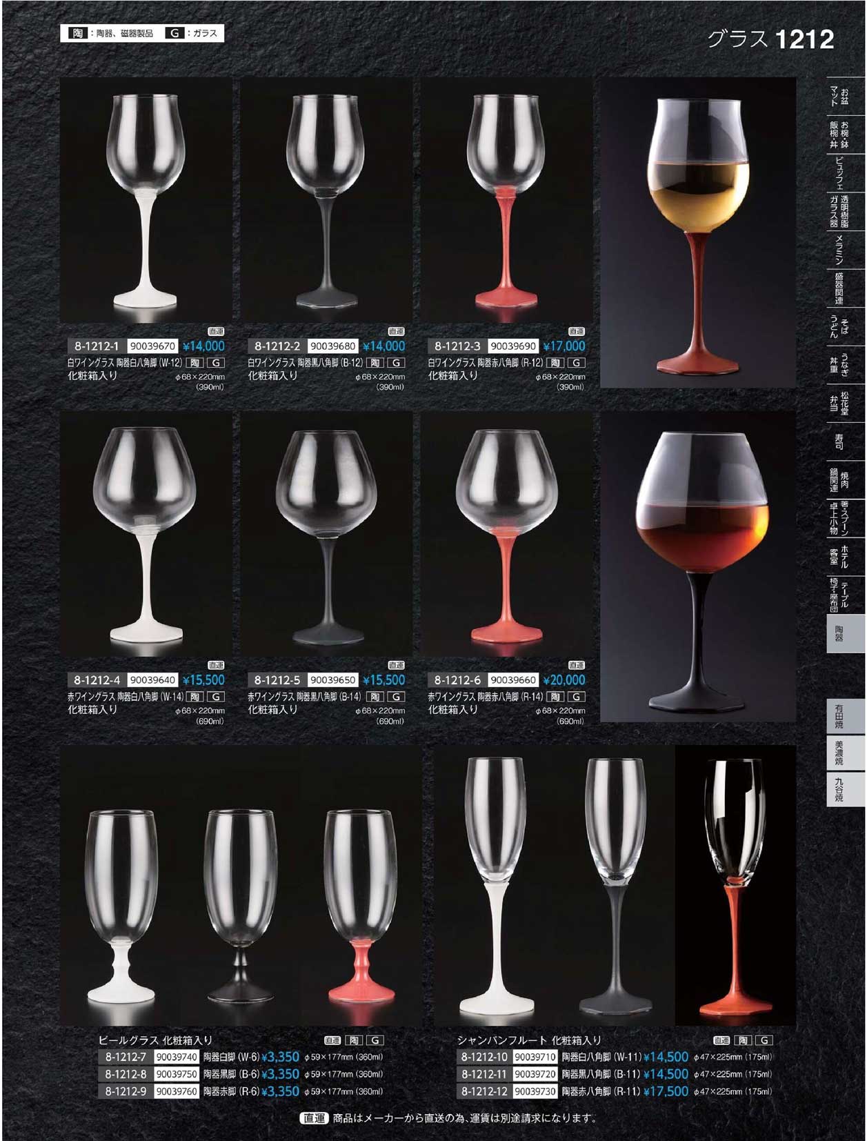 陶・G)シャンパンフルート陶器赤脚(R-11) (有田焼)(上90)