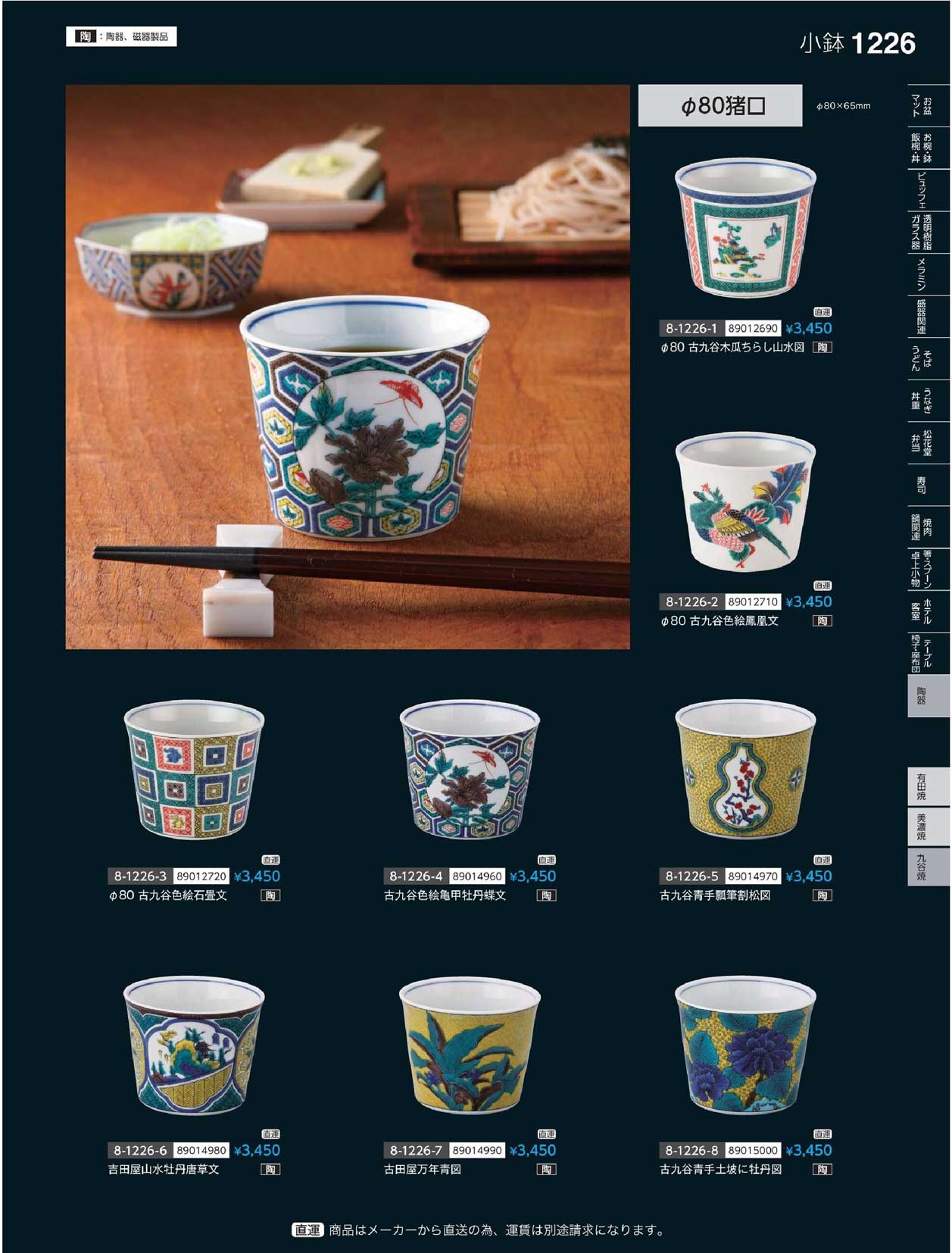 陶)φ80猪口 古九谷木瓜ちらし山水図 (九谷焼)(上90)(商品番号8-1226-1)