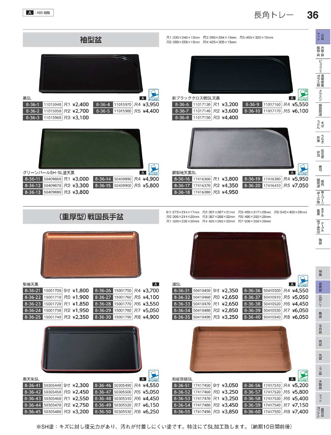 A)尺1袖型盆 グリ-ンパールSH・SL塗天黒