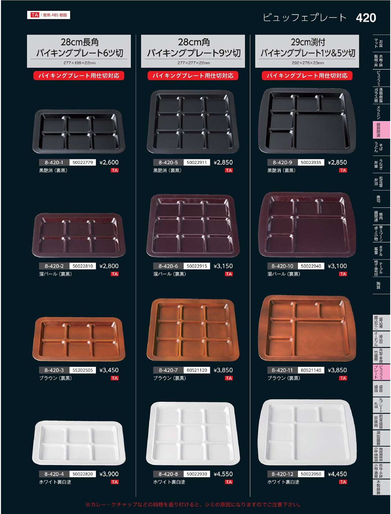 TA)28cm長角バイキングプレート六ツ切ブラウン(裏黒)