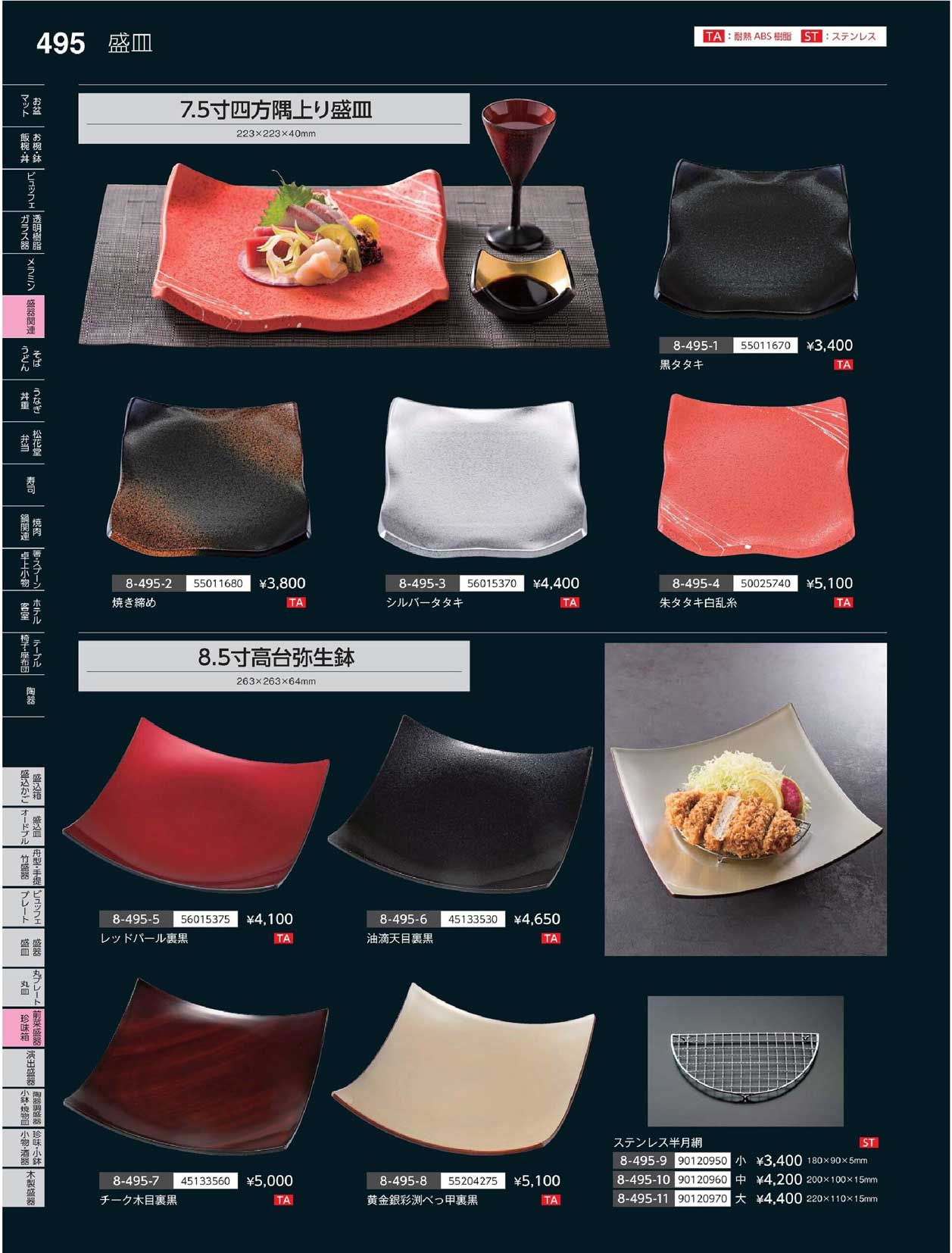 TA)7.5寸四方隅上り盛皿焼き締め(商品番号8-495-2)