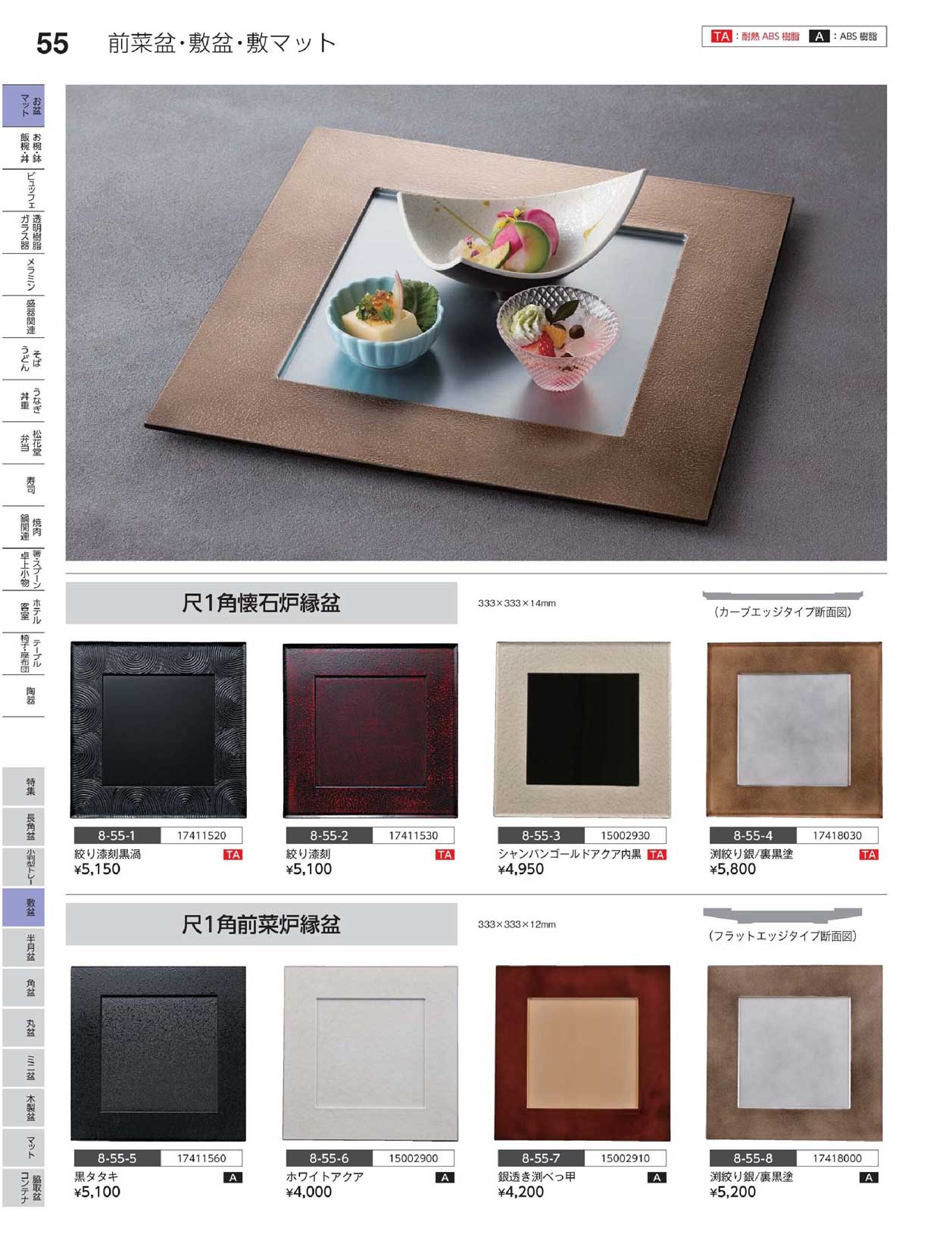 A)尺1角懐石炉縁盆 絞り漆刻(商品番号8-55-2)