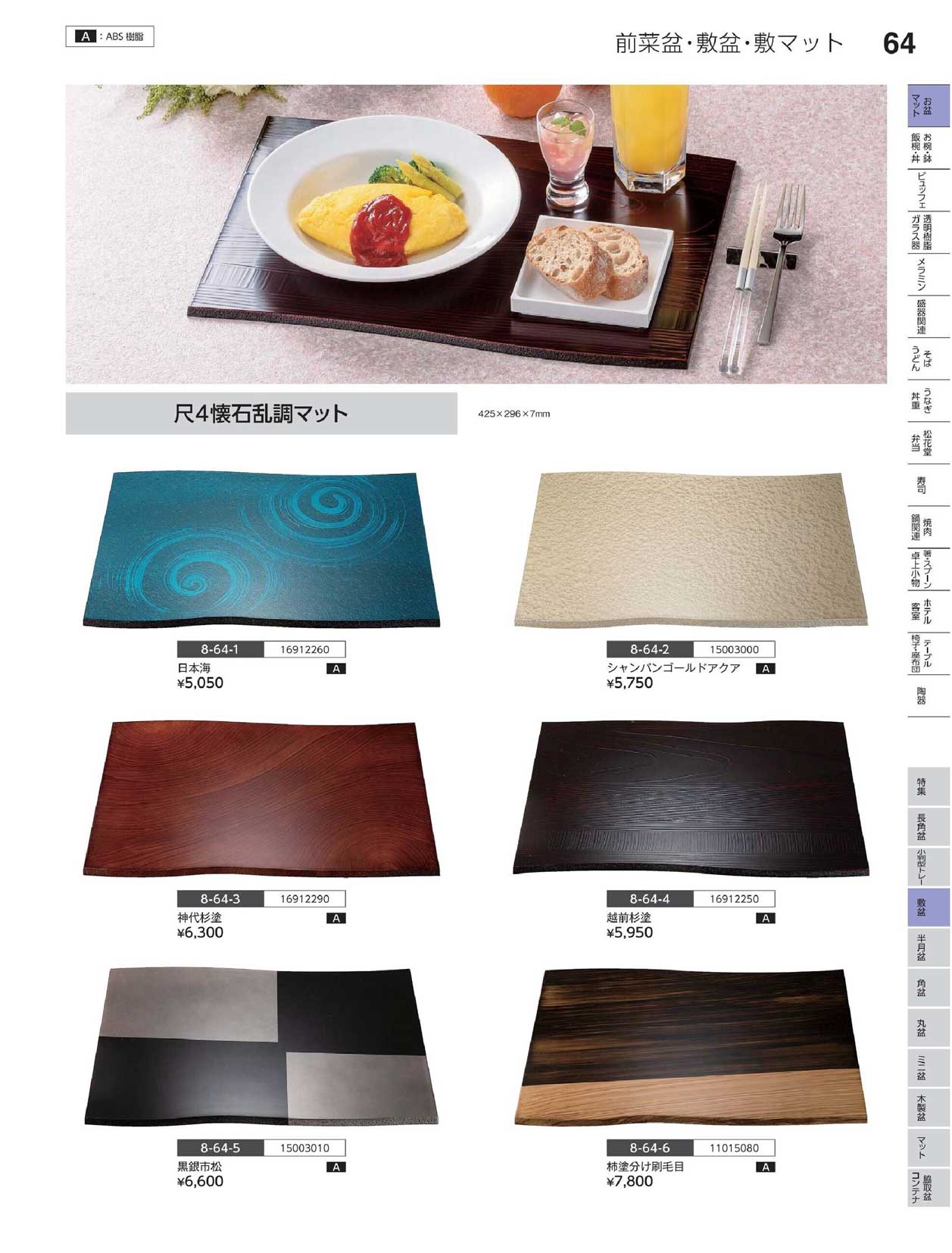 A)尺4会席乱調マット 神代杉塗(商品番号8-64-3)