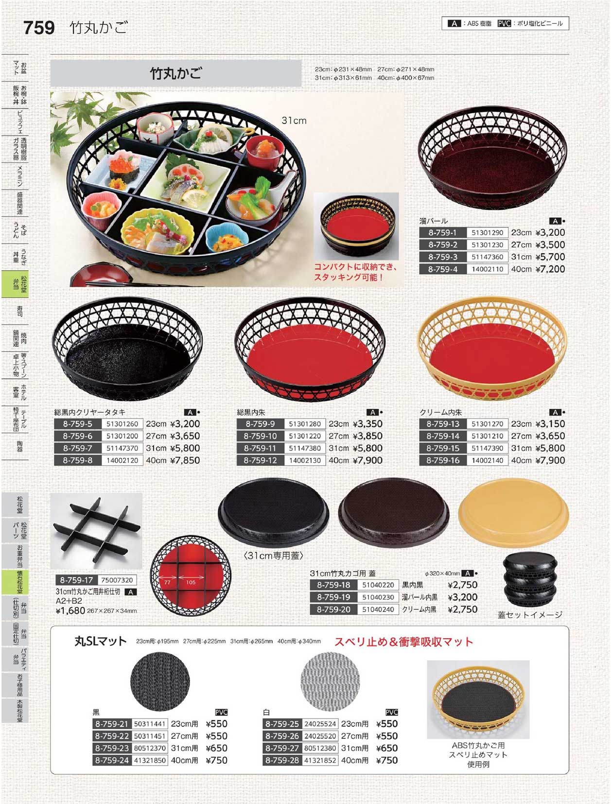 A)φ231竹丸かご 総黒内朱