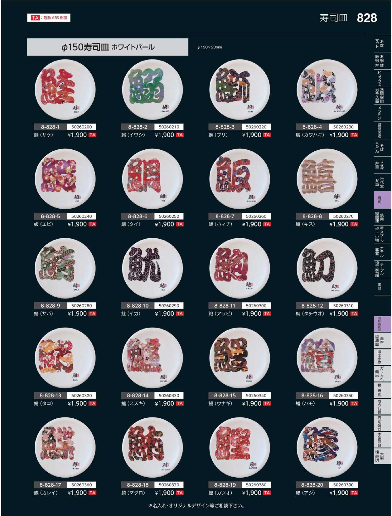 TA)φ150寿司皿 ホワイトパール 文字鯛(タイ)