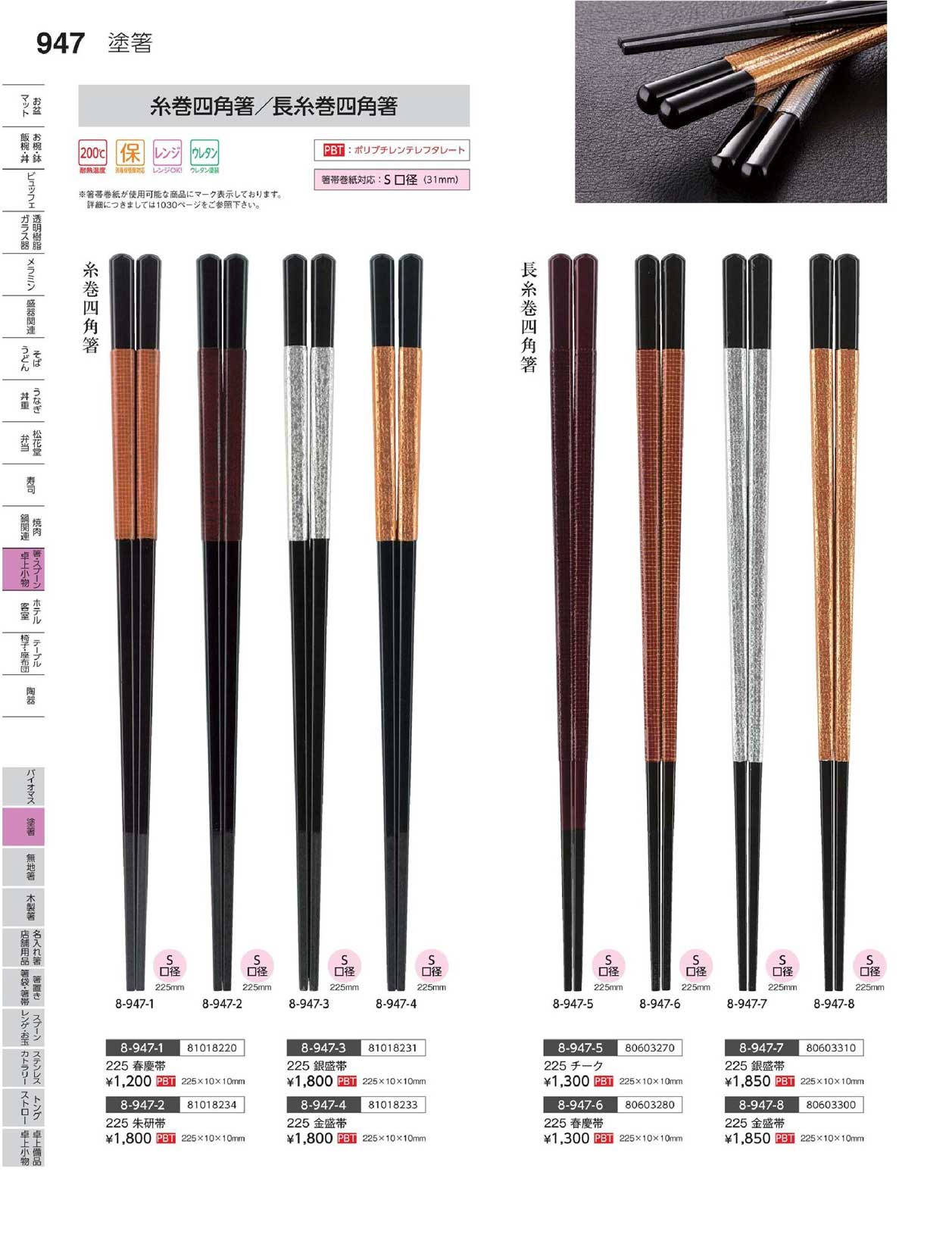 PBT)225 糸巻き四角箸 黒/朱研帯(商品番号8-947-2)