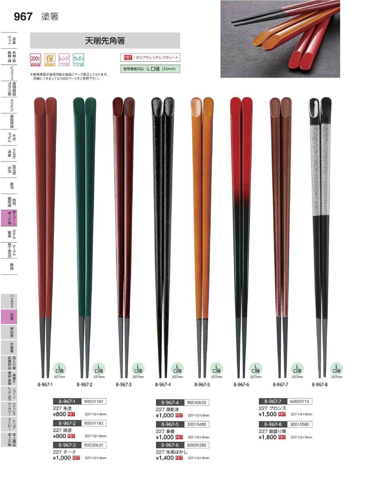PBT)227 天削先角箸 チーク(商品番号8-967-3)