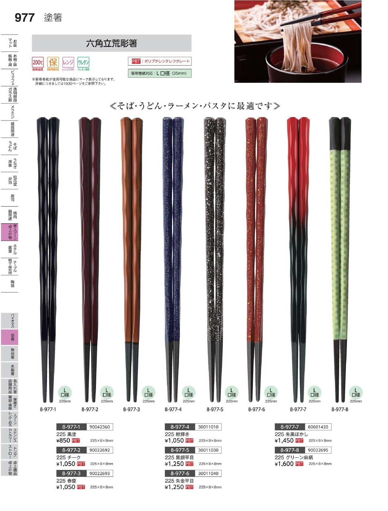 PBT)225 六角立荒彫箸 春慶