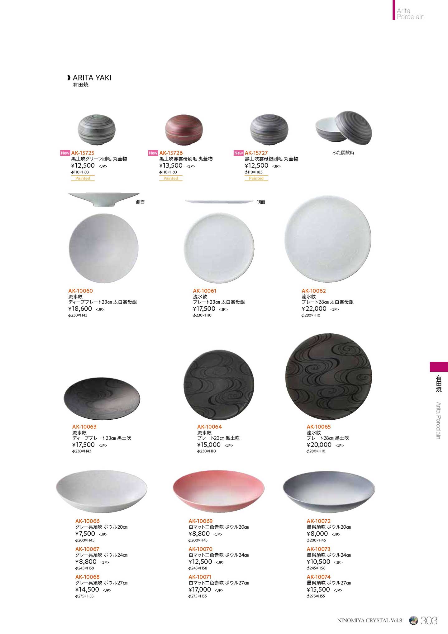 流水紋 プレート23cm 黒土吹(商品番号AK-10064)
