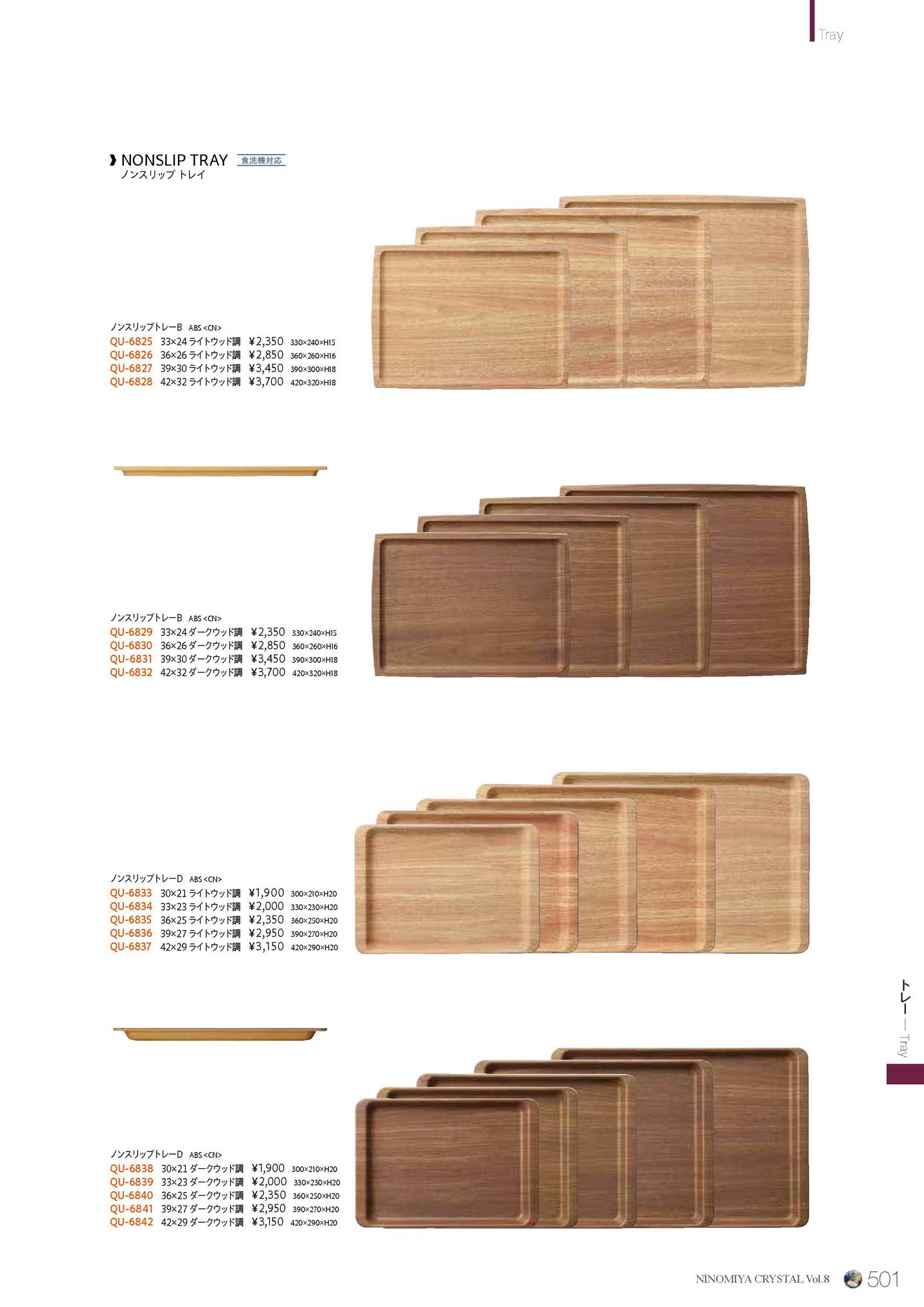 ノンスリップトレーB 39×30 ライトウッド調(商品番号QU-6827)