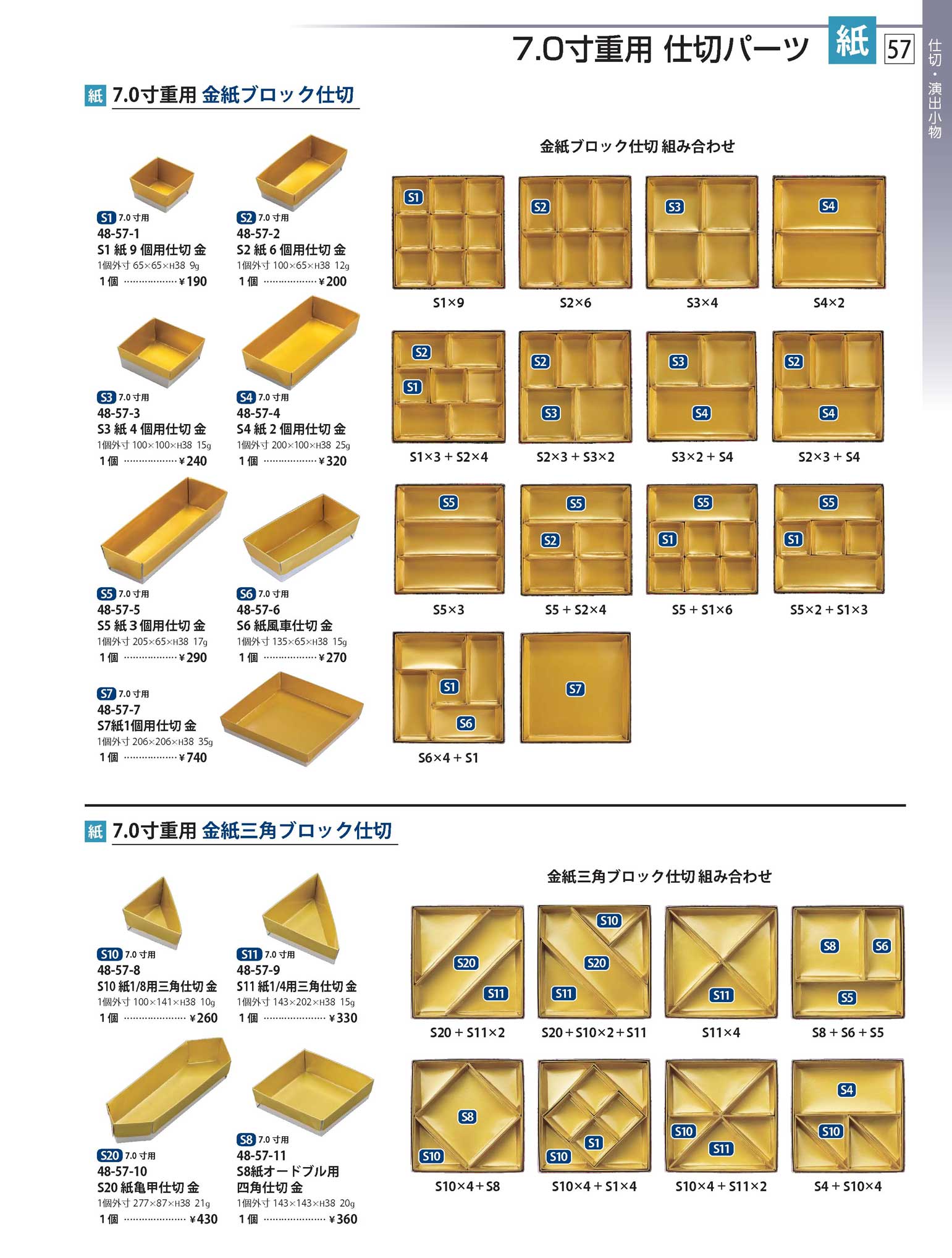 紙)7.0寸用紙1個用仕切 金 (S7)(商品番号48-57-7)