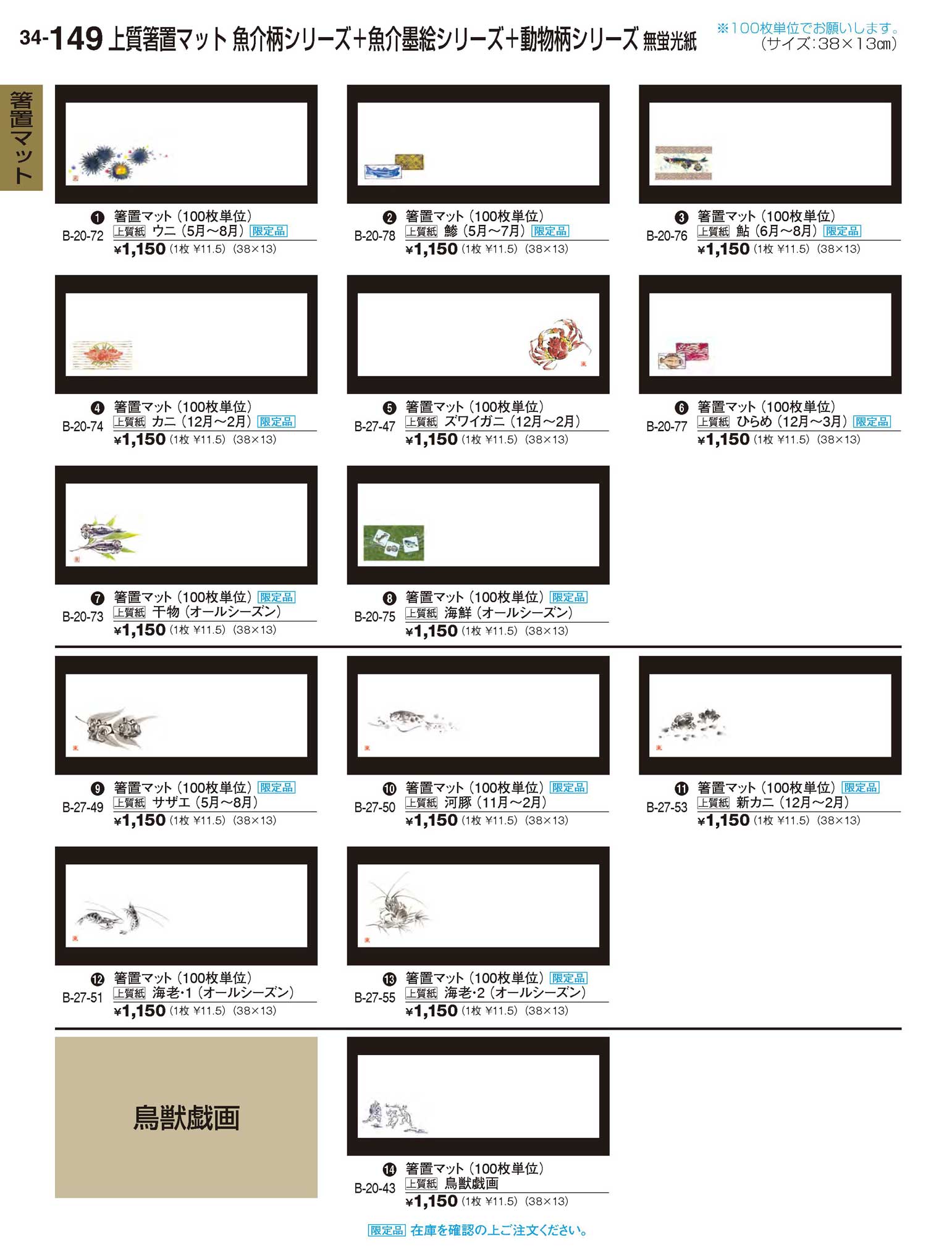 上質紙箸置マット(100枚単位) 海鮮(オールシーズン)限定品