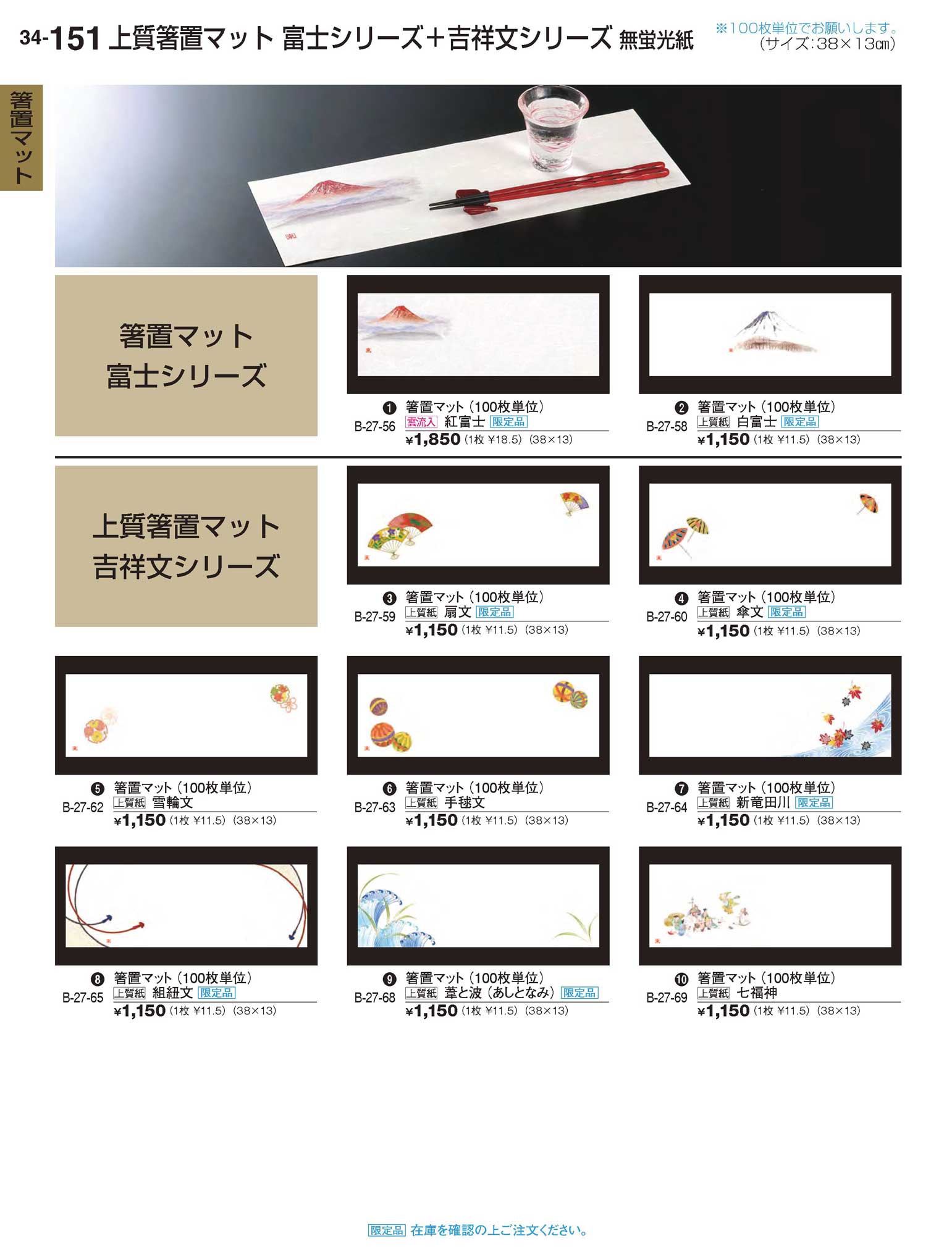 雲流入箸置マット(100枚単位) 紅富士限定品(商品番号B-27-56)