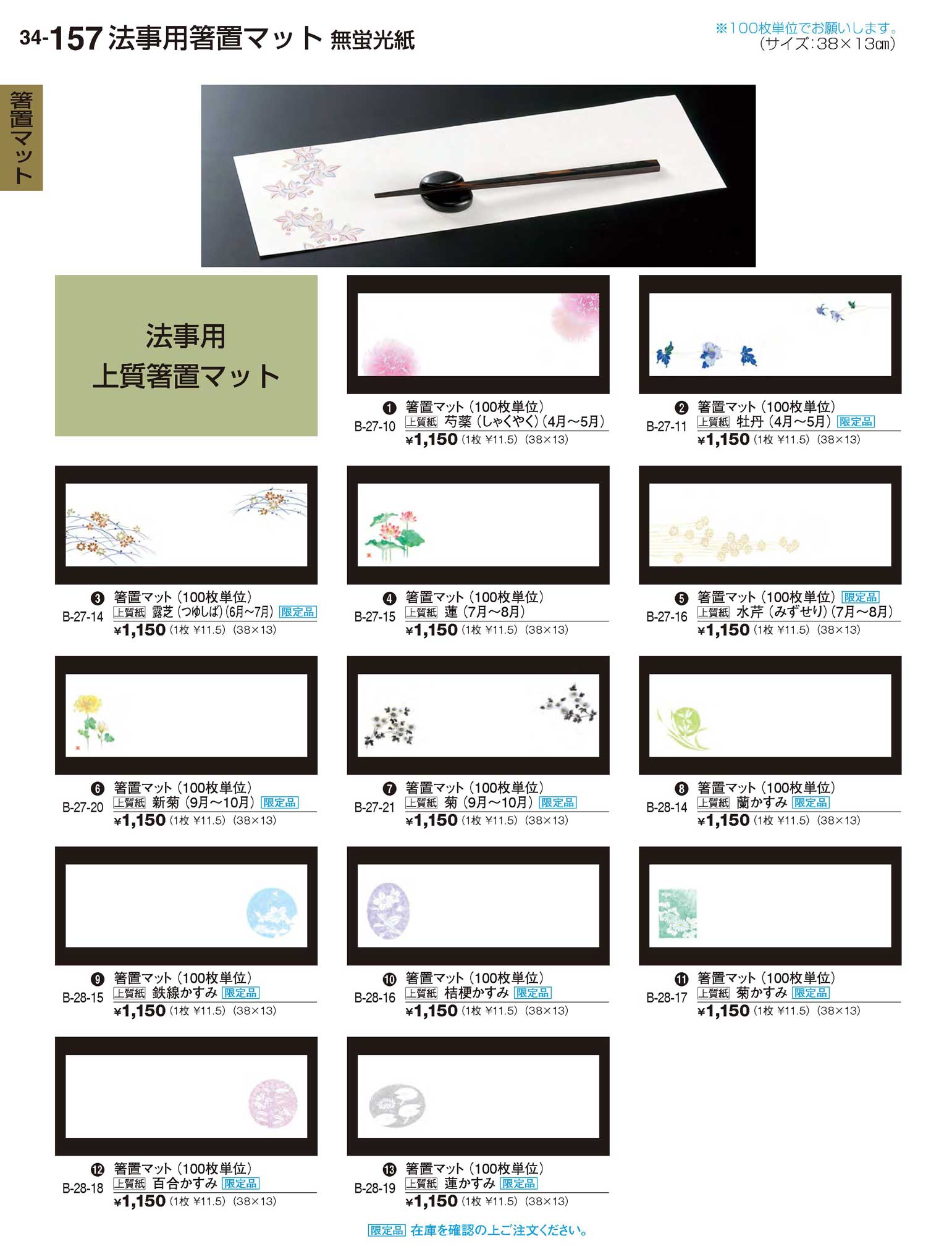 上質紙箸置マット(100枚単位) 蓮かすみ限定品