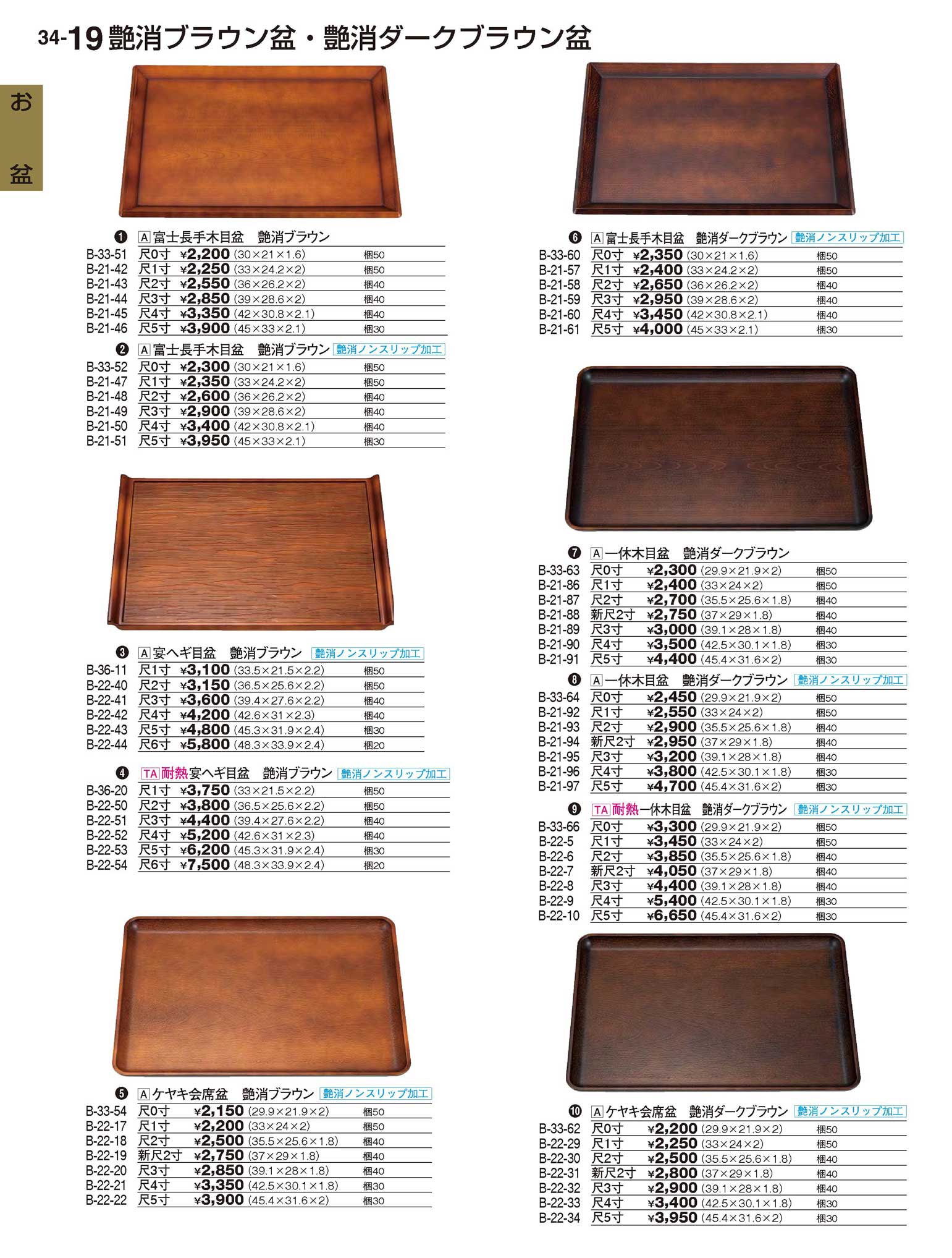 TA耐熱一休木目盆 艶消ダークブラウンNS 新尺2寸艶消ノンスリップ加工