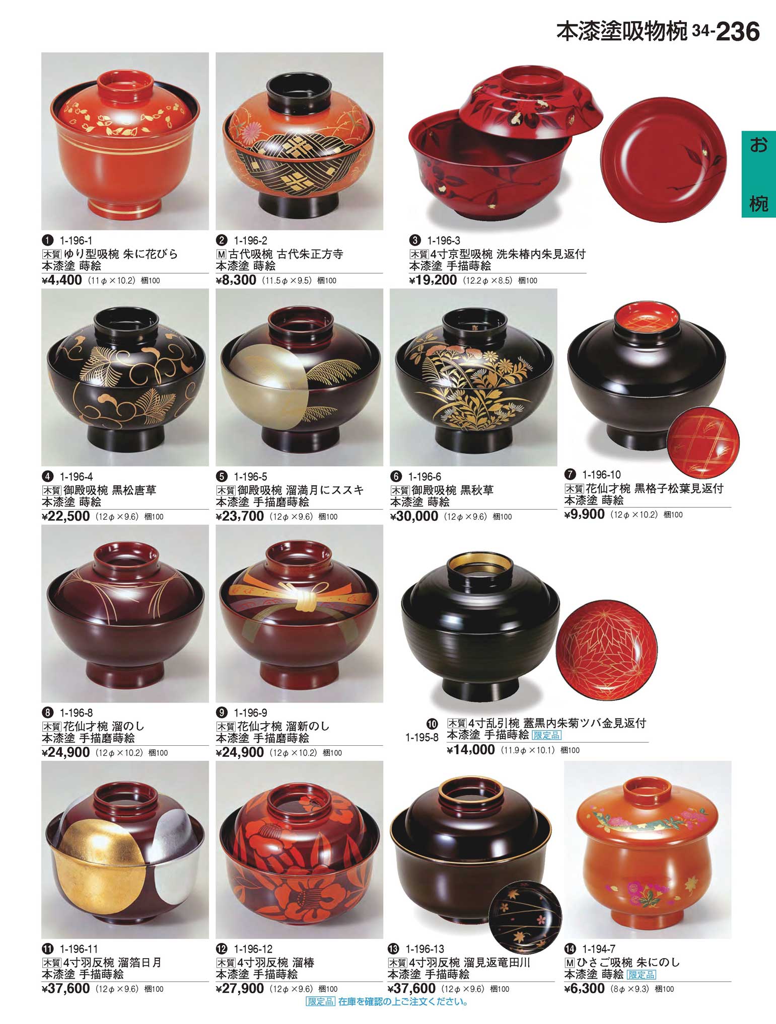 木質4寸京型吸椀 洗朱椿内朱見返付(本漆塗)手描蒔絵