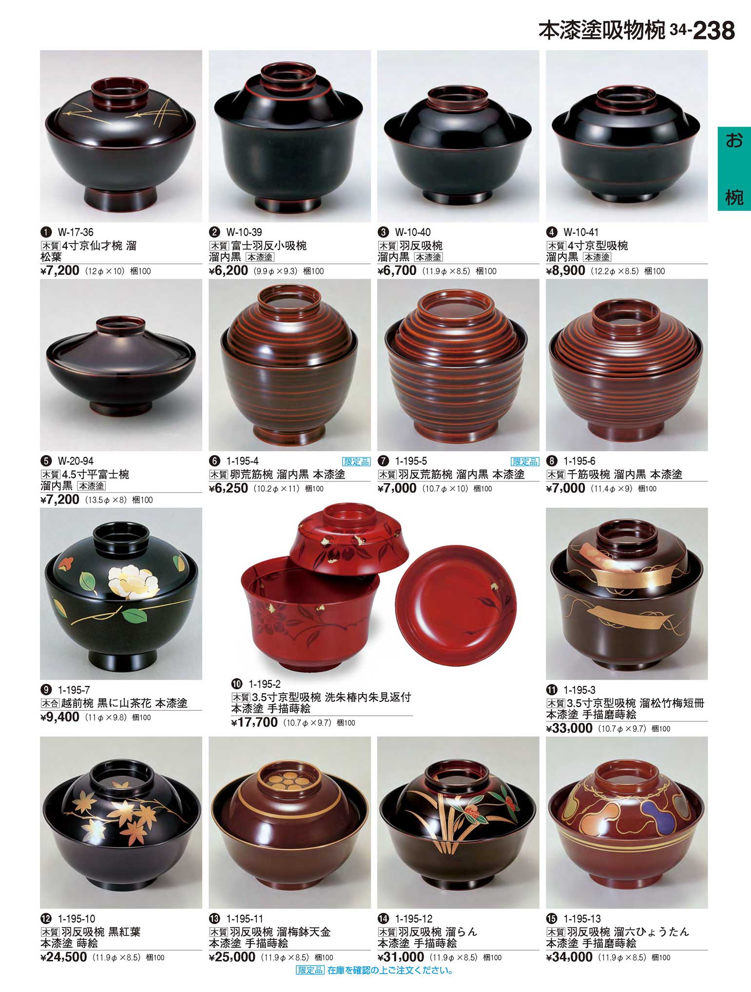 木質3.5寸京型吸椀 洗朱椿内朱見返付(本漆塗)手描蒔絵