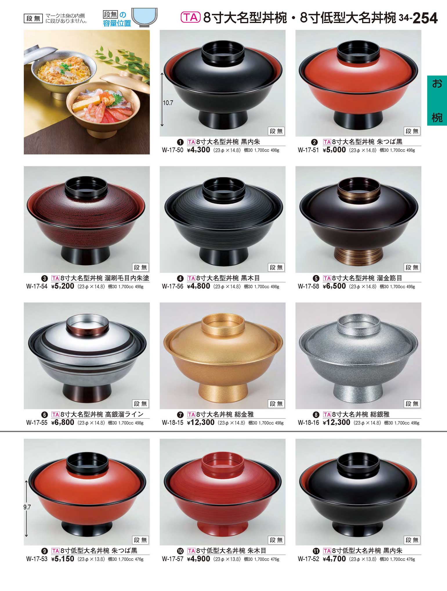 TA8寸大名型丼椀 高銀溜ライン(段無)