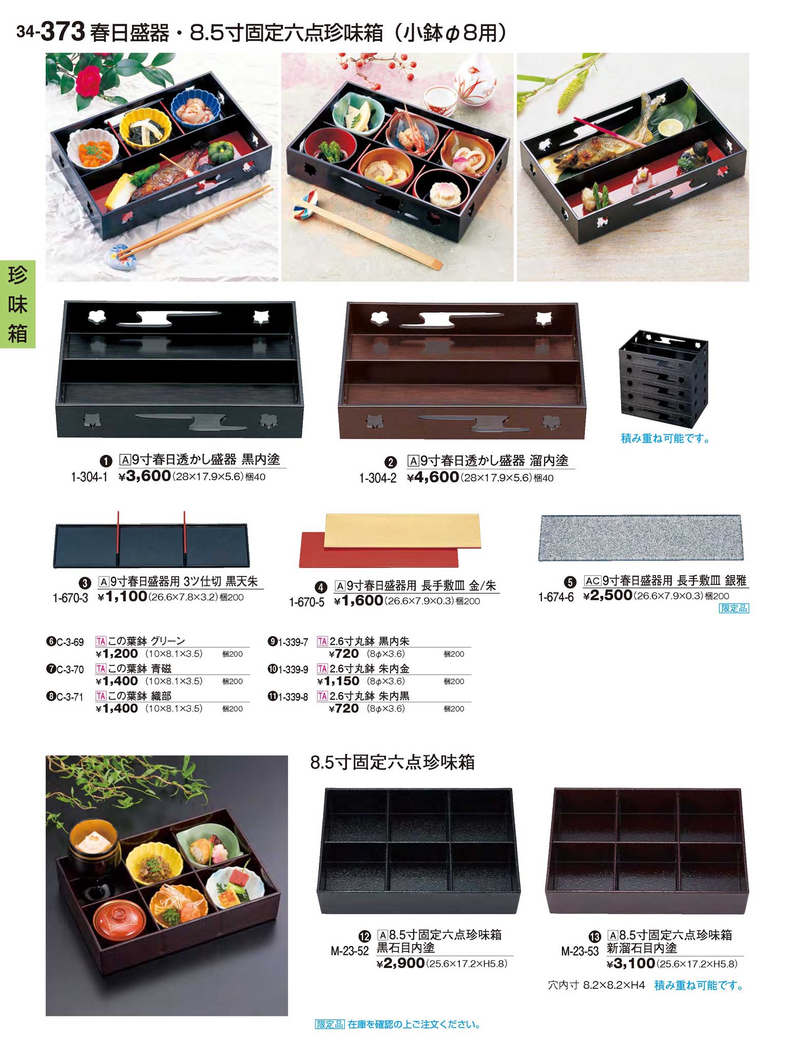 A8.5寸固定六点珍味箱 新溜石目内塗(商品番号M-23-53)