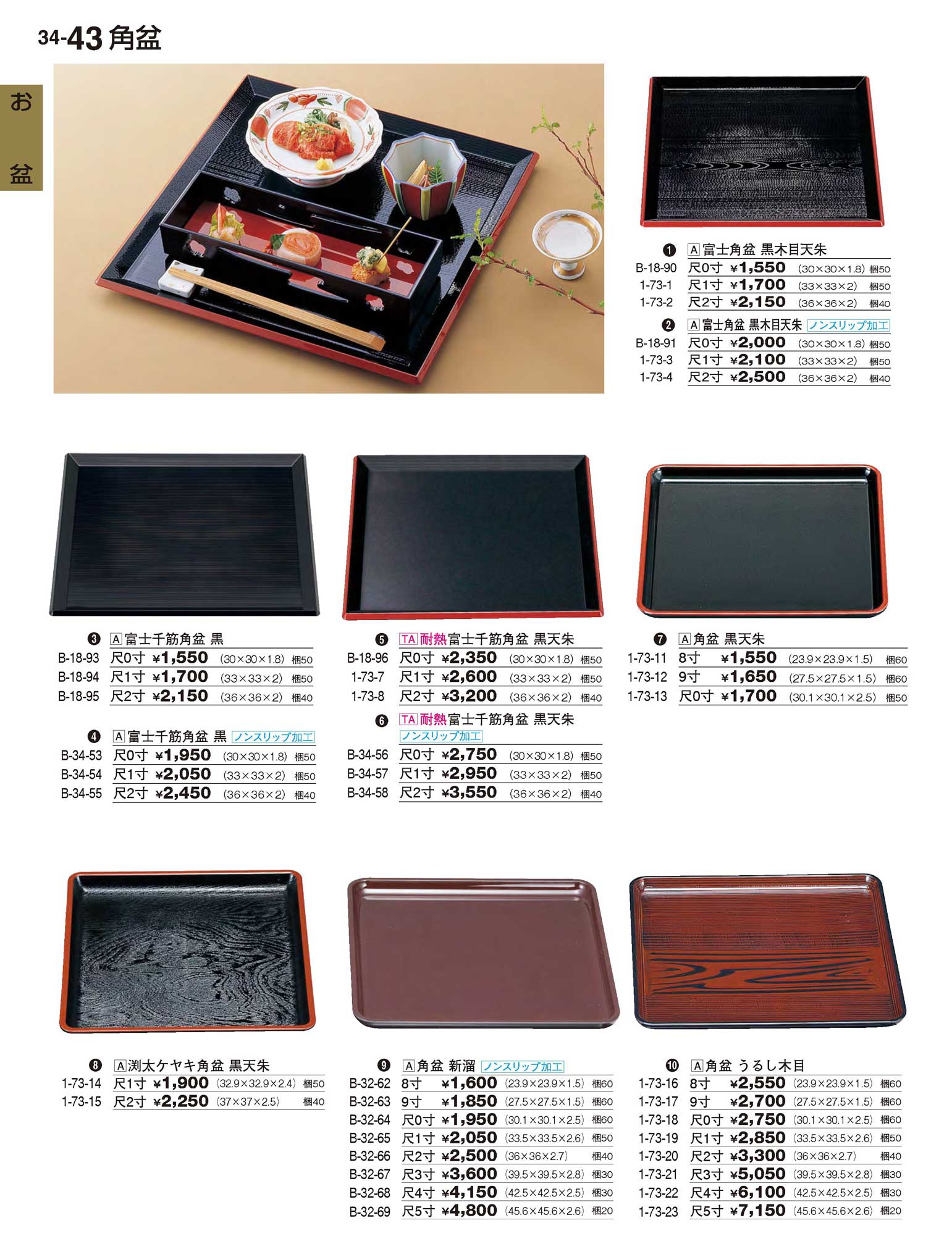 TA耐熱富士千筋角盆 黒天朱NS 尺1寸ノンスリップ加工