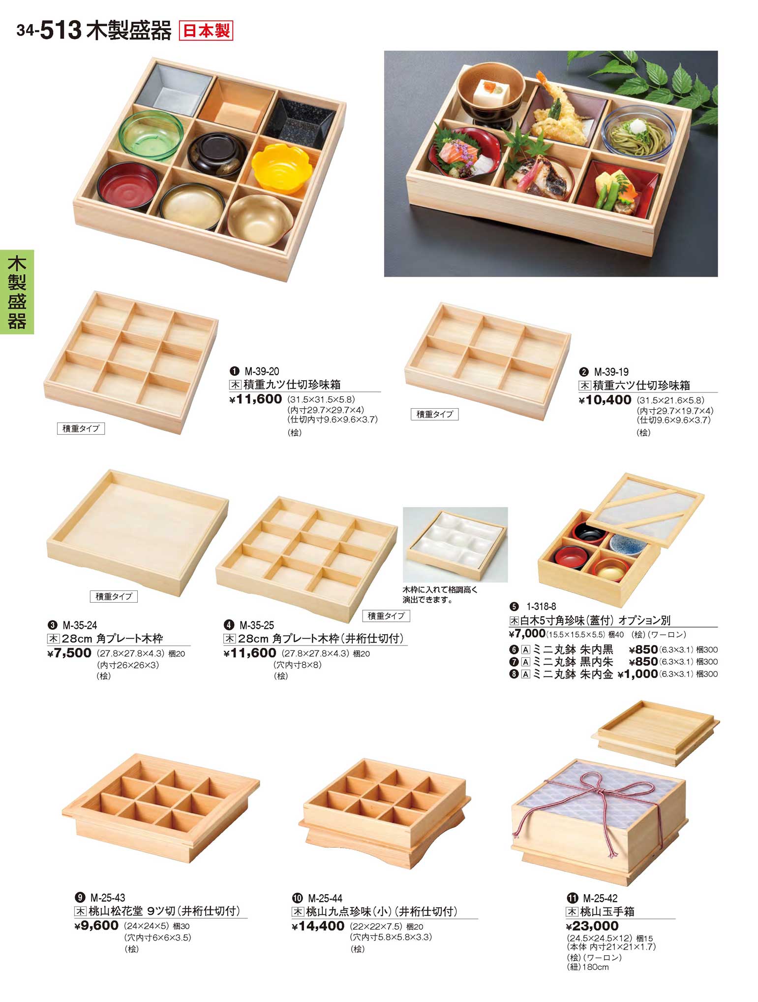 木製(桧)桃山九点珍味(小) 井桁仕切付