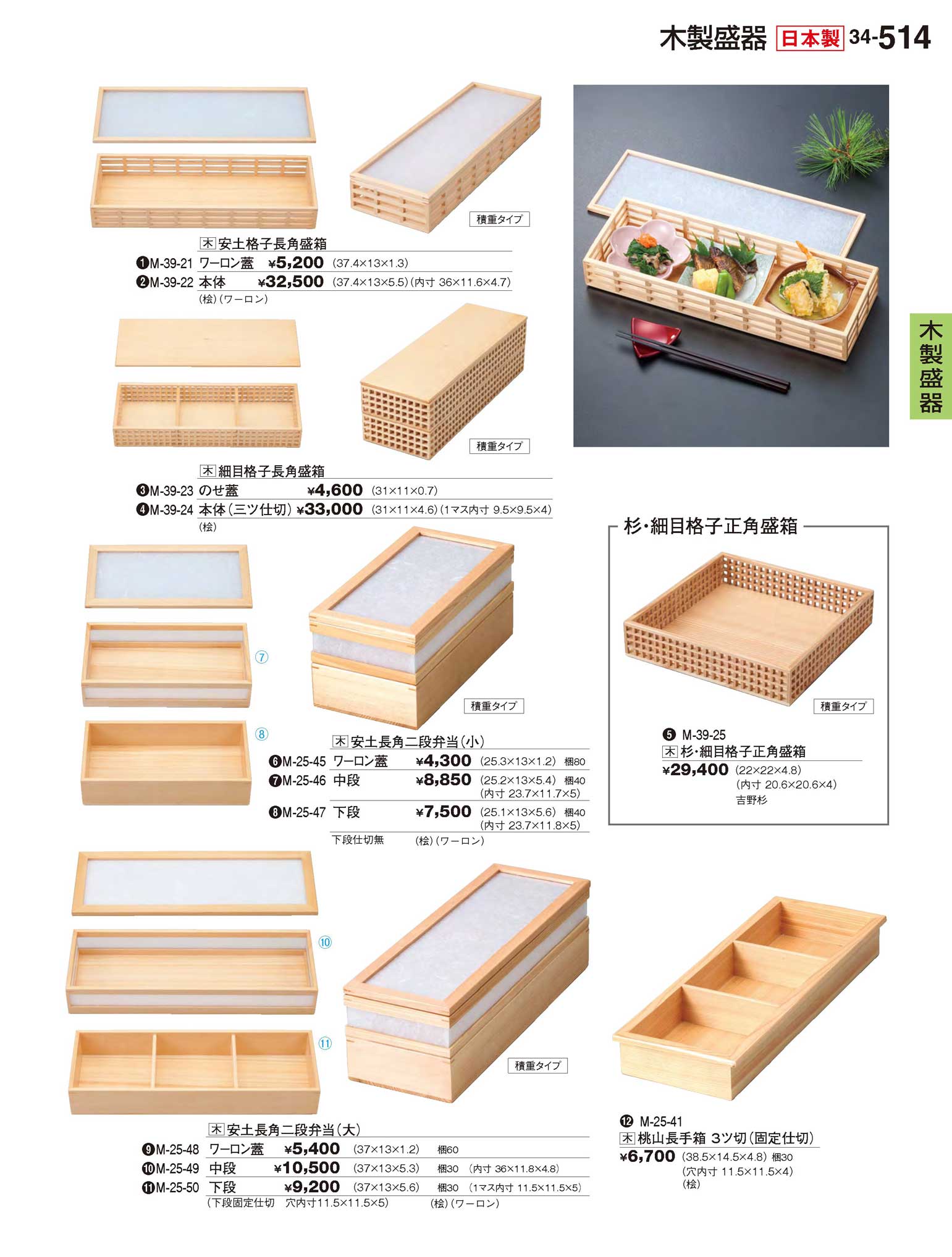 木製(桧)安土格子長角盛箱 ワーロン蓋(商品番号M-39-21)