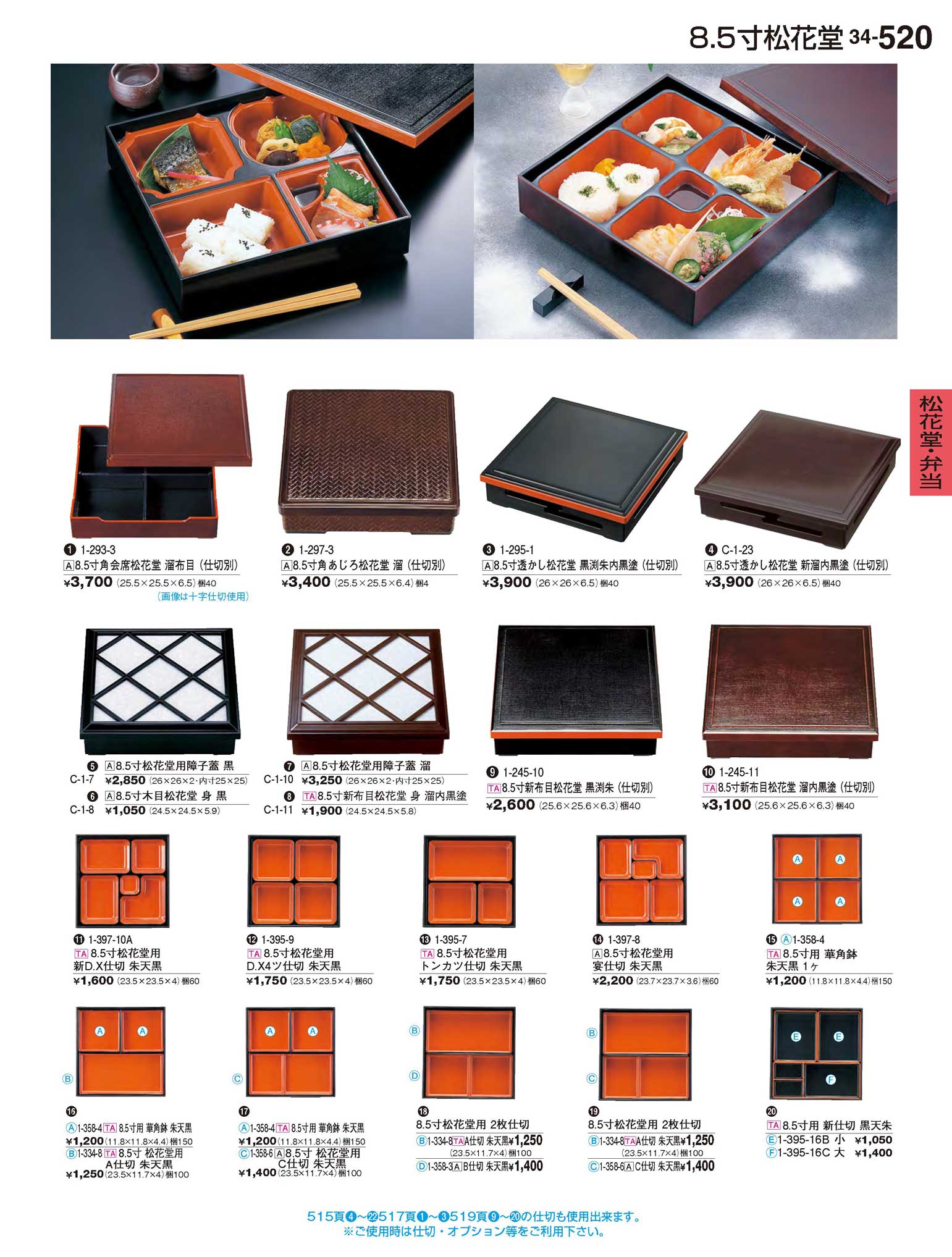 TA8.5寸松花堂用新D.X仕切 朱天黒