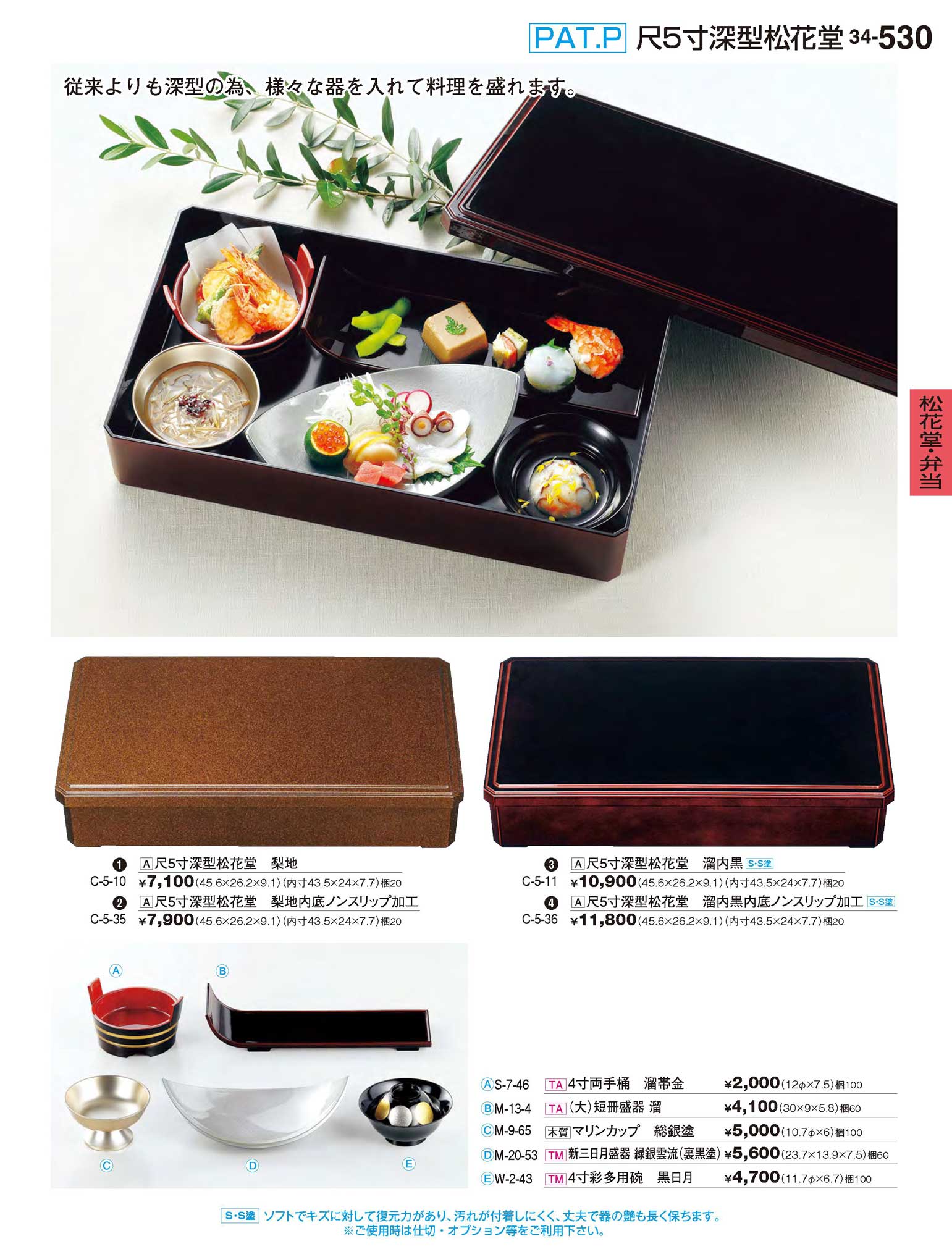 A尺5寸深型松花堂 溜内黒 (内底NS加工)S・S塗