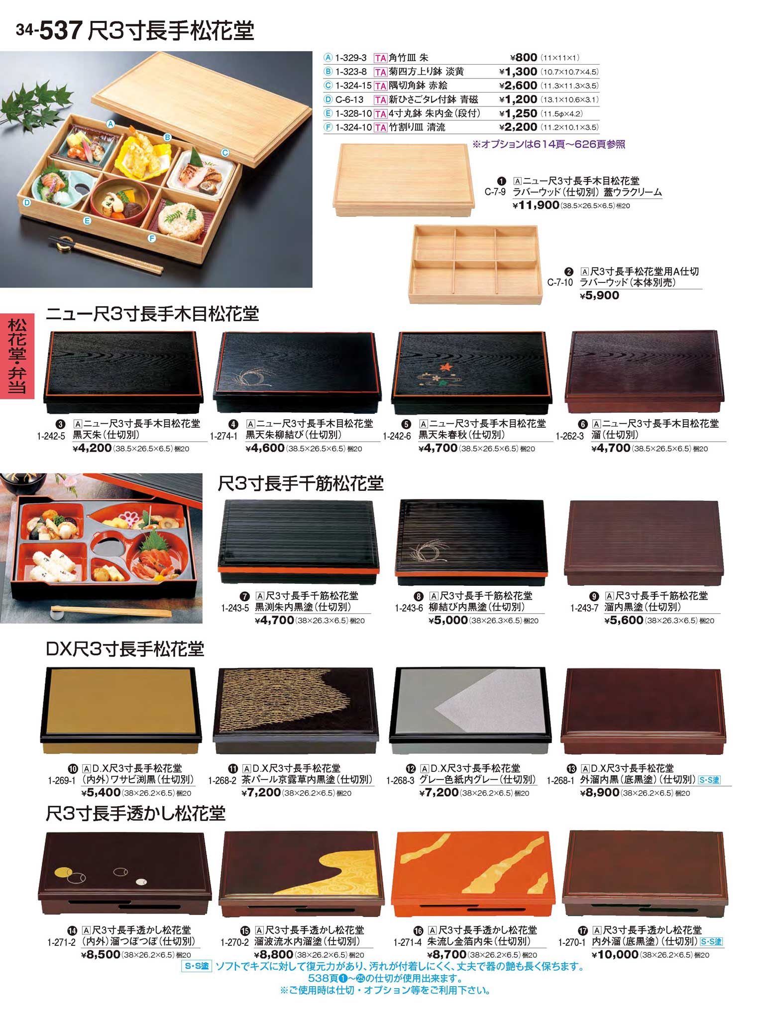 AD.X尺3寸長手松花堂 外溜内黒((底黒塗))(仕切別)S・S塗