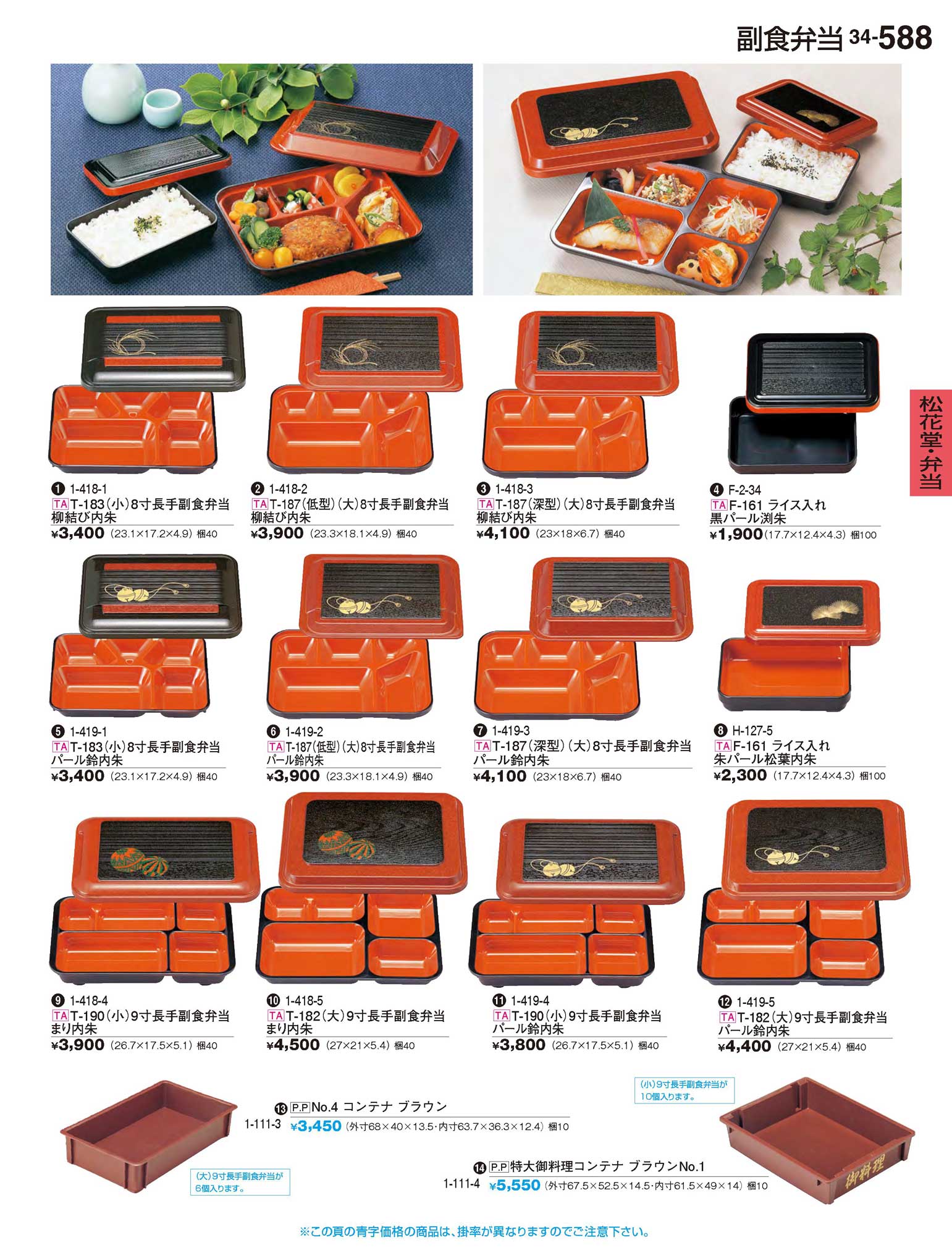 TAT-182(大)9寸長手副食弁当 パール鈴内朱