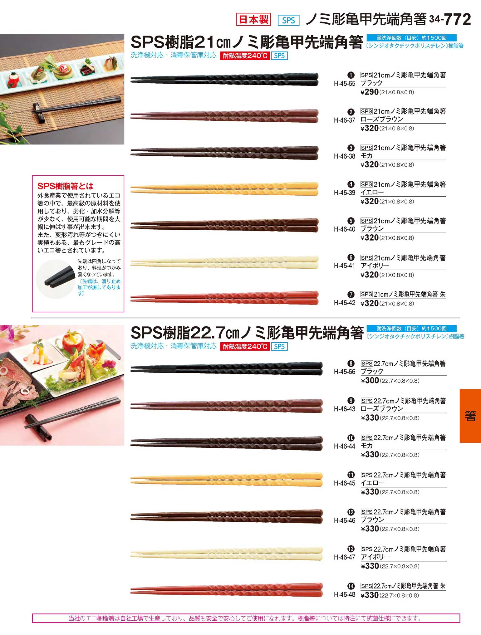 SPS22.7cmノミ彫亀甲先端角箸 モカ